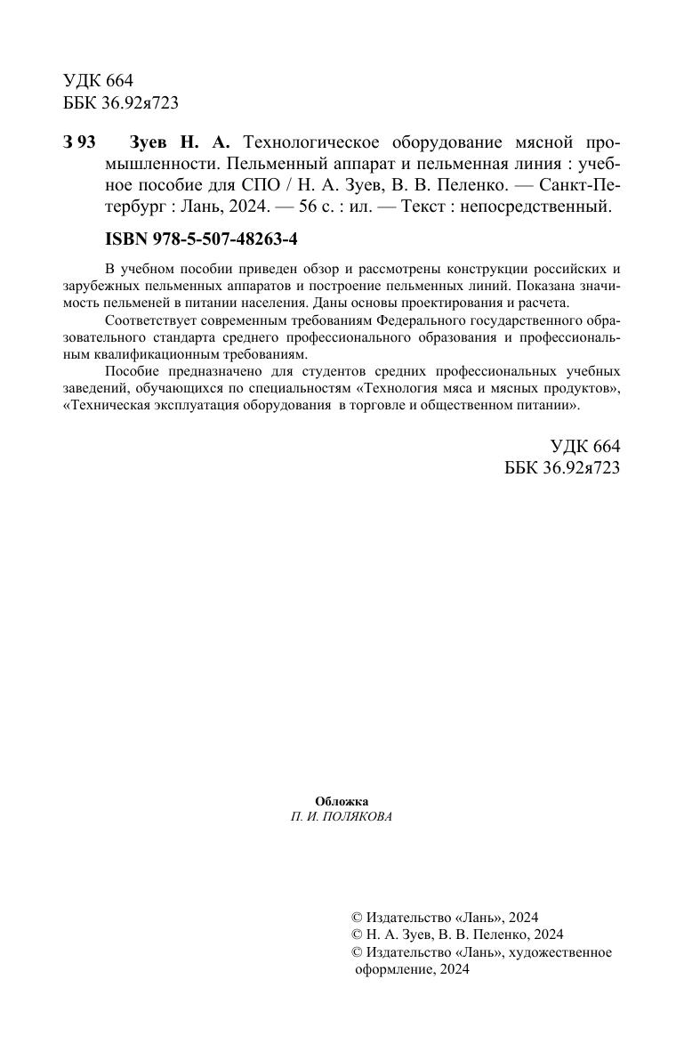 В учебном пособии приведен обзор и рассмотрены конструкции российских и зарубежных пельменных аппаратов и построение пельменных линий. Показана значимость пельменей в питании населения. Даны основы проектирования и расчета. Соответствует современным требованиям Федерального государственного образовательного стандарта среднего профессионального образования и профессиональным квалификационным требованиям. Пособие предназначено для студентов средних профессиональных учебных заведений, обучающихся по специальностям «Технология мяса и мясных продуктов», «Техническая эксплуатация оборудования в торговле и общественном питании».
