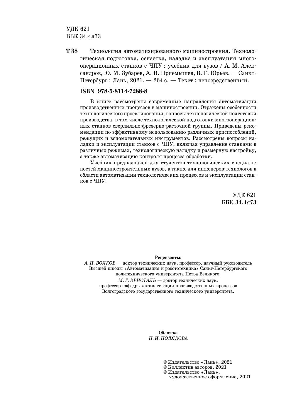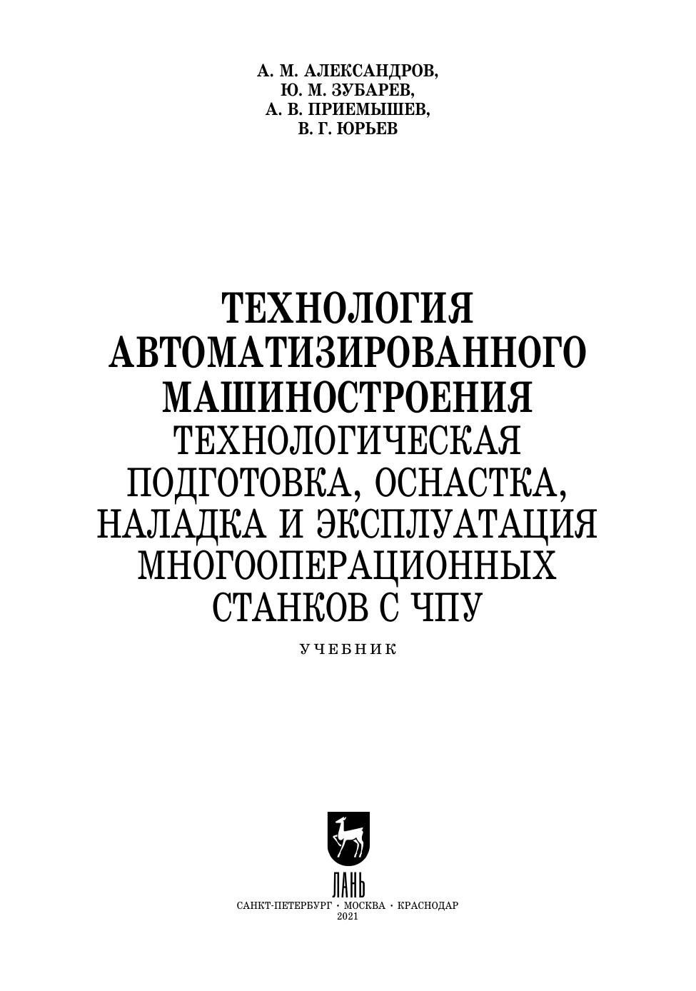 В книге рассмотрены современные направления автоматизации производственных процессов в машиностроении. Отражены особенности технологического проектирования, вопросы технологической подготовки производства, в том числе технологической подготовки многооперационных станков сверлильно-фрезерно-расточной группы. Приведены рекомендации по эффективному использованию различных приспособлений, режущих и вспомогательных инструментов. Рассмотрены вопросы наладки и эксплуатации станков с ЧПУ, включая управление станками в различных режимах, технологическую наладку и размерную настройку, а также автоматизацию контроля процесса обработки.