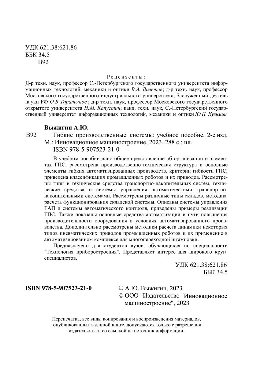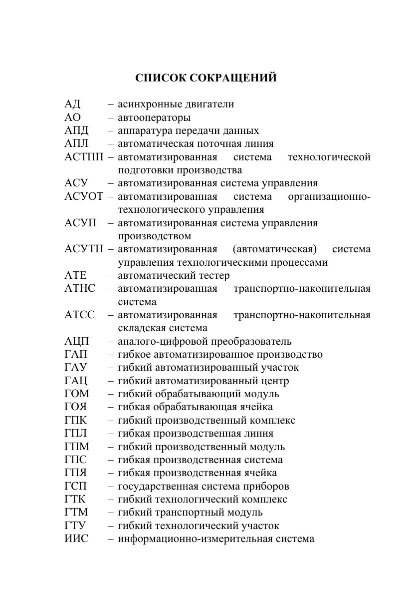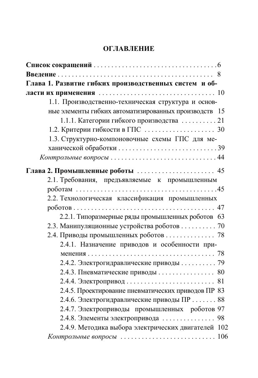 В учебном пособии дано общее представление об организации и элементах ГПС, рассмотрена производственно-техническая структура и основные элементы гибких автоматизированных производств, критерии гибкости ГПС, приведена классификация промышленных роботов и их приводов. Рассмотрены типы и технические средства транспортно-накопительных систем, технические средства и системы управления автоматическими транспортно-накопительными системами. Рассмотрены различные типы складов, методика расчета функционирования складской системы. Описаны системы управления ГАП и системы автоматического контроля, приведены примеры реализации ГПС. Также показаны основные средства автоматизации и пути повышения производительности оборудования в условиях автоматизированного производства. Дополнительно рассмотрены методики расчета динамики некоторых типов пневматических приводов промышленных роботов и их применение в автоматизированном комплексе для многопереходной штамповки. Предназначено для студентов вузов, обучающихся по специальности "Технология приборостроения". Представляет интерес для широкого круга специалистов.