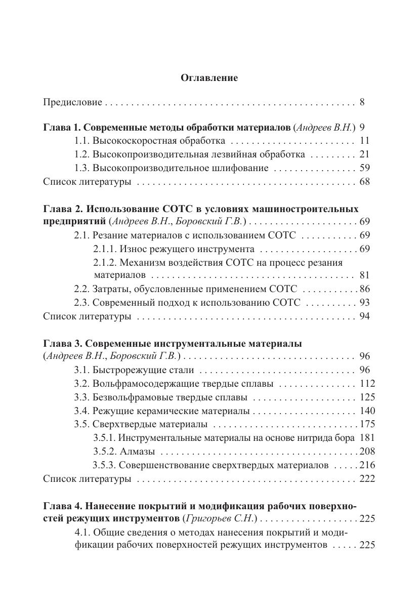 Представлены результаты исследований эффективности применения новых инструментальных материалов (твердые сплавы и быстрорежущие стали, керамические материалы, сверхтвердые материалы) и износостойких покрытий для высокоскоростного резания. Приведены различные конструкции режущего инструмента для обработки тел вращения, плоскостей и отверстий, способствующие эффективному использованию режущего инструмента. В связи с ужесточением экологических требований к смазочноохлаждающим технологическим средствам рекомендованы альтернативные способы улучшения условий в зоне стружкообразования. Для конструкторов инструмента, технологов, может быть полезна студентам вузов.