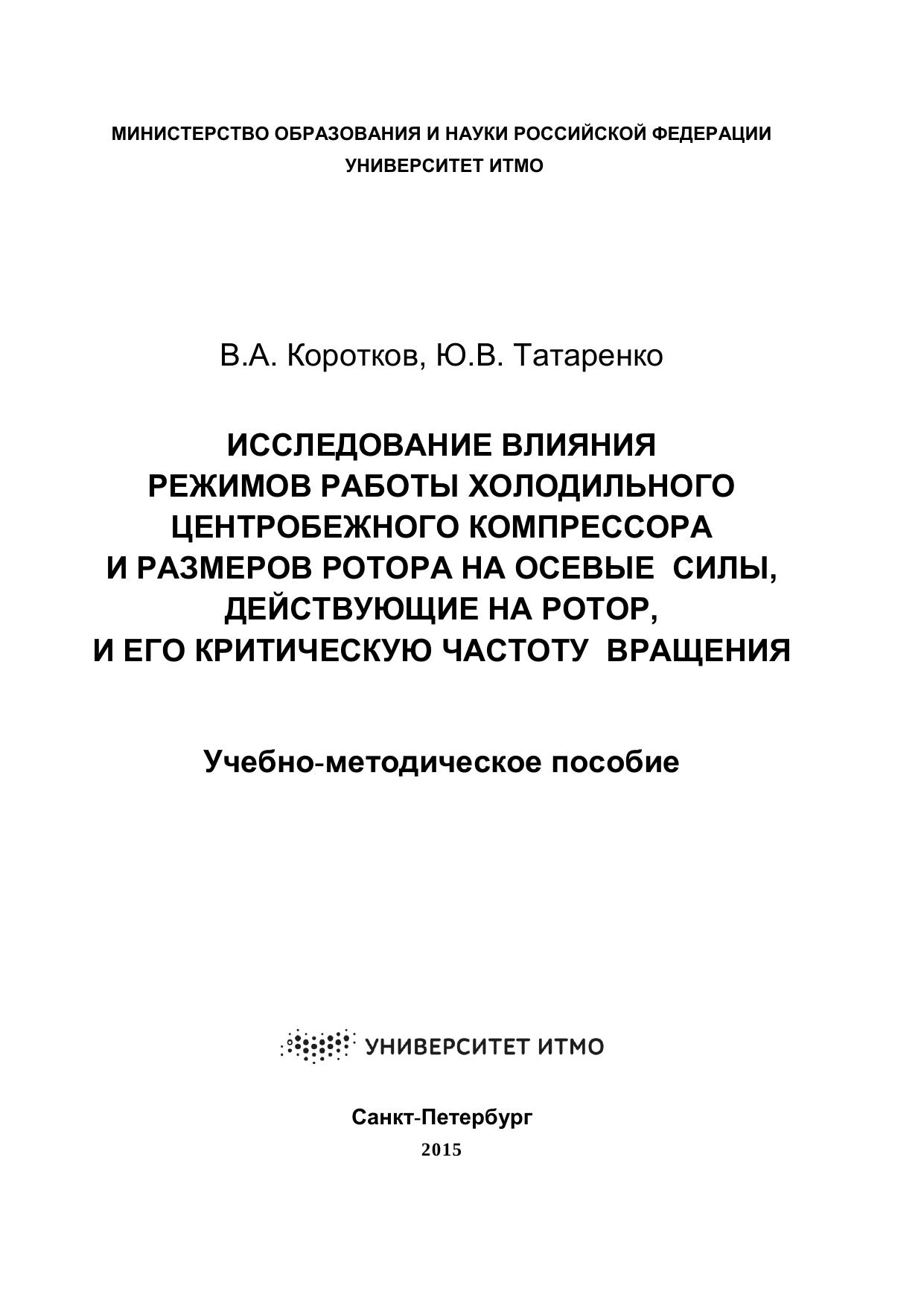 Исследование влияния режимов работы холодильного центробежного компрессора и размеров ротора на осевые силы, действующие на ротор, и его критическую частоту вращения: учебно-методическое пособие