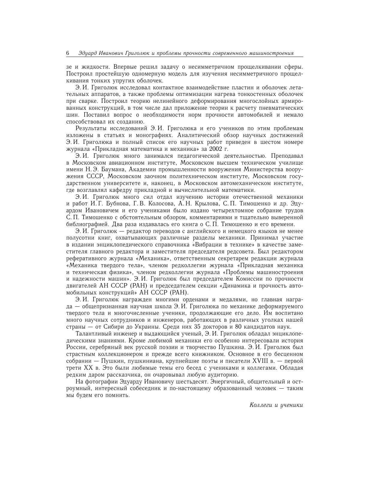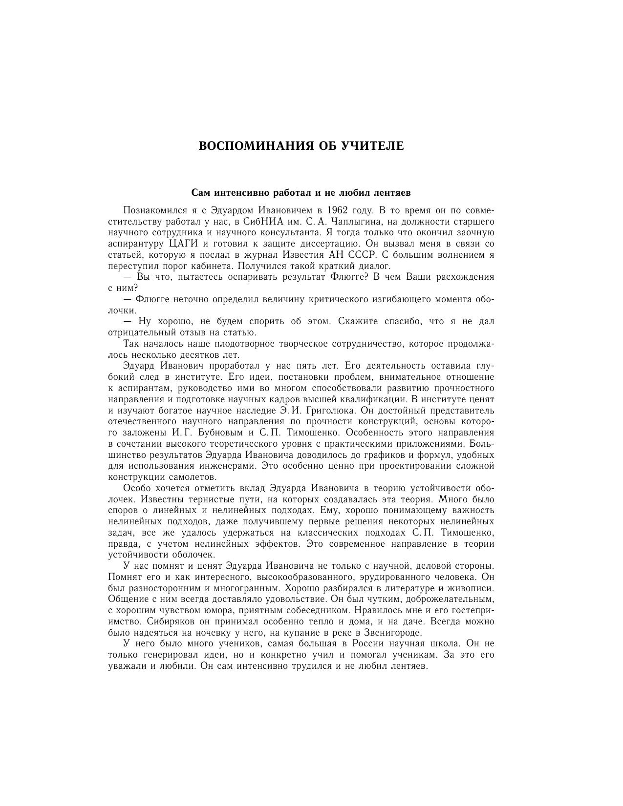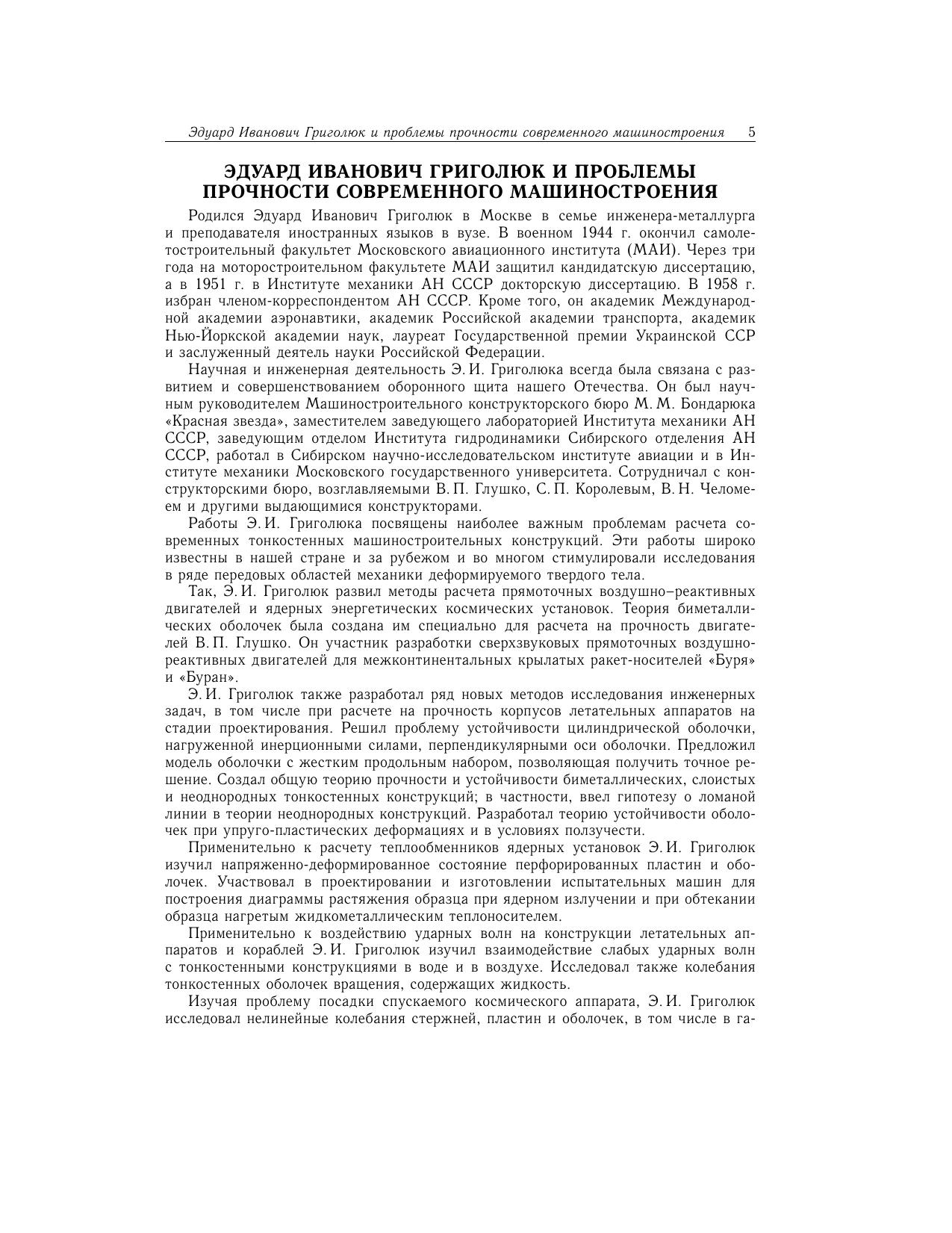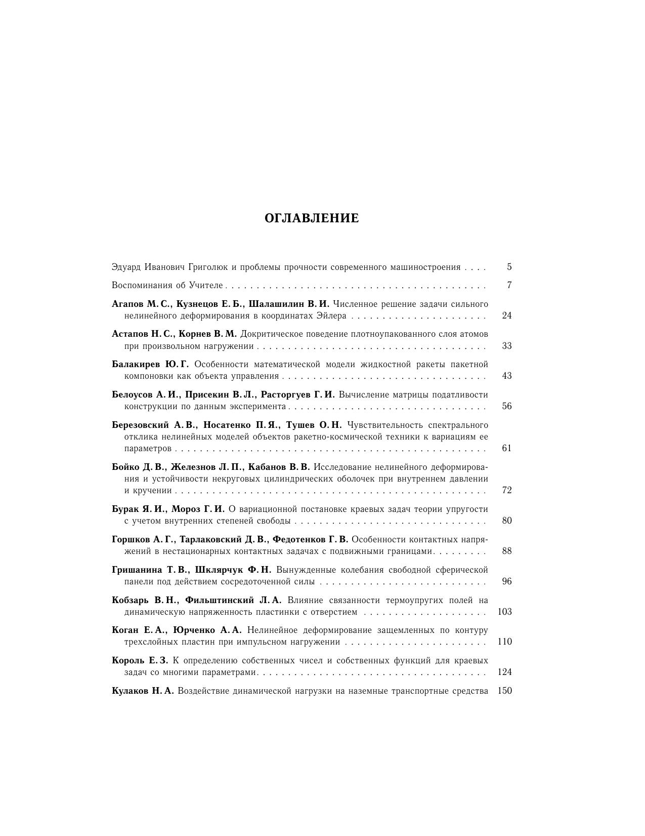 Сборник научных статей посвящен актуальным вопросам механики деформируемого твердого тела, имеющим отношение к расчету на прочность современных машиностроительных конструкций. Издание сборника приурочено к 85-летию члена-корреспондента Российской академии наук Григолюка Э.И.(1923-2005). Для специалистов по расчету и проектированию современных легких конструкций, а также для аспирантов и студентов.