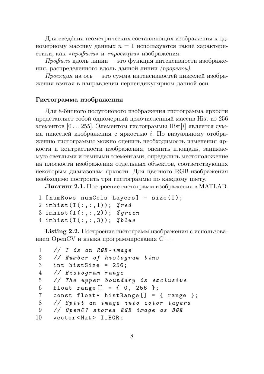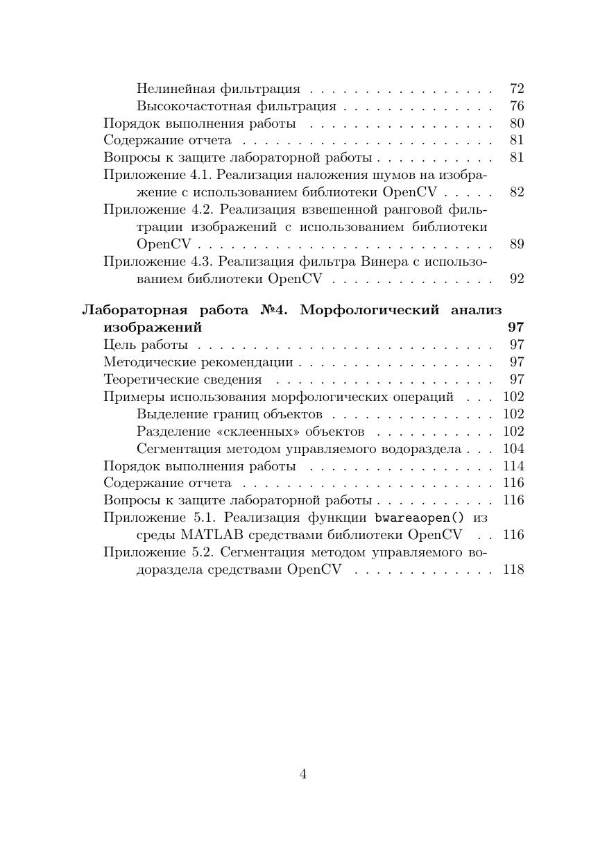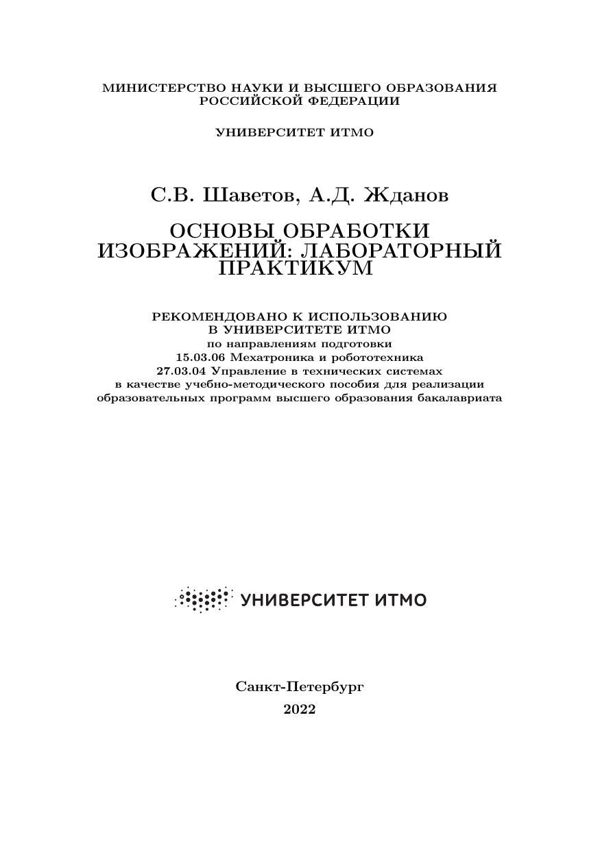 Учебно-методическое пособие посвящено основам обработки цифровых изображений. Представлено четыре лабораторных работы с последовательно увеличивающейся сложностью, начиная от представления изображений как массива чисел до морфологического анализа изображений. В пособии представлены примеры реализации алгоритмов на трех языках программирования: MATLAB, Python и C++. Пособие предназначено для студентов, изучающих дисциплину «Техническое зрение» по образовательной программе бакалавриата «Робототехника и искусственный интеллект» и направлениям подготовки 15.03.06 «Мехатроника и робототехника» и 27.03.04 «Управление в технических системах».
