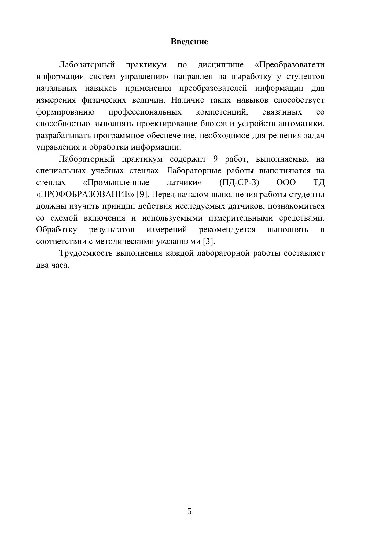 В пособии приведены методические указания к выполнению лабораторных работ по курсу "Преобразователи информации в системах управления". Рассмотрены принципа действия и приведены основные технические характеристики изучаемых датчиков, необходимые для выполнения лабораторных работ, варианты заданий и методические указания к выполнению. Лабораторные работы выполняются на стендах «Промышленные датчики» (ПД-СР-3) ООО ТД «ПРОФОБРАЗОВАНИЕ».