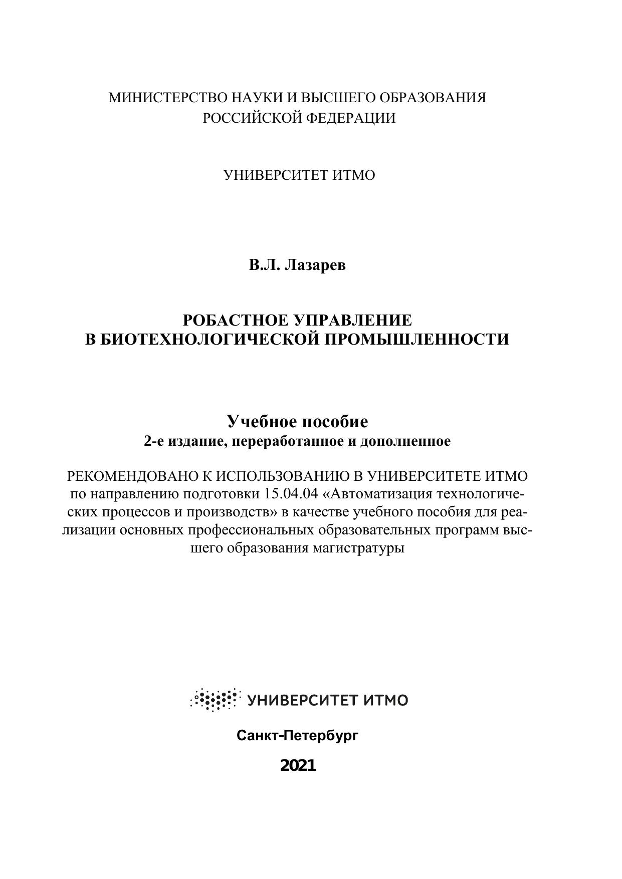 Пособие предназначено для магистрантов, обучающихся по направлению подготовки 15.04.04 «Автоматизация технологических процессов и производств», образовательной программы «Технологии и системы преобразования энергии».