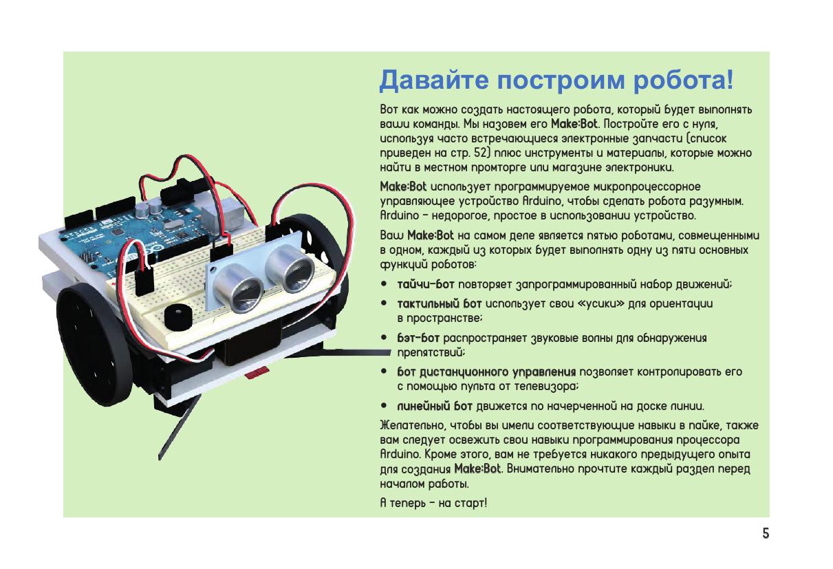 В издании простым языком рассказывается, как создать робота своими руками на базе наборов Arduino. Вы сможете сконструировать робота с пятью основными функциями: