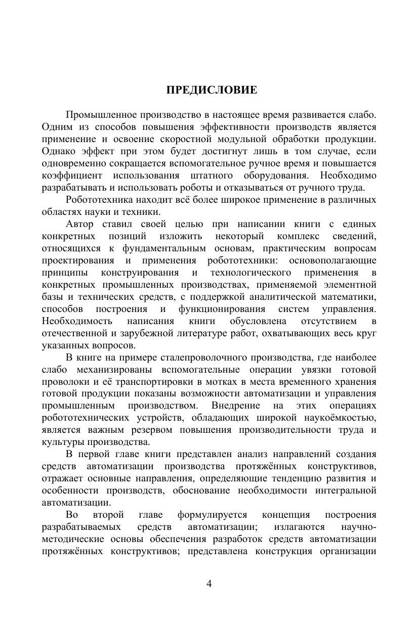 В монографии рассматриваются механико-математические подходы в проектировании робототехники как средства технологического совершенства в промышленном производстве. Излагаются основополагающие принципы конструирования: технологичность, инвариантность, интегральность. Показаны практические конструкции основных узлов составляющих робот на примере производства протяжённых конструктивов. В развитии робототехники указаны примеры направлений технологического совершенствования и применений. Книга предназначена для разработчиков и исследователей. Она может быть полезна студентам, работникам машиностроительной, радиоэлектронной и метизной промышленности чёрной металлургии.