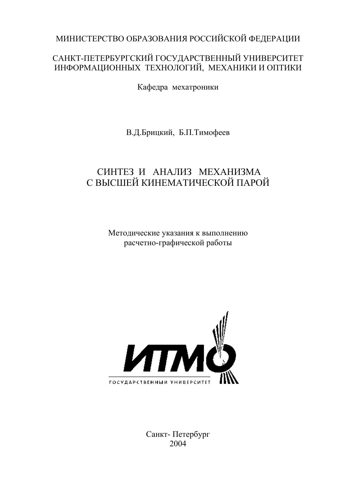 Синтез и анализ механизма с высшей кинематической парой. Методические указания к выполнению расчетно- графической работы