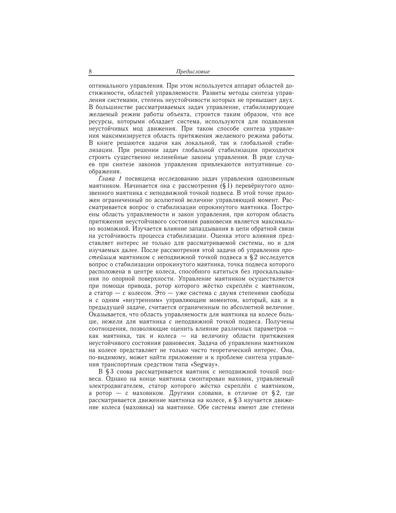 Изучается проблема управления системами, содержащими неустойчивый объект. Развиты методы синтеза управления системами со степенью неустойчивости не более двух. Построены алгоритмы управления, реализующие максимальную область притяжения для ряда механических объектов. Описаны результаты некоторых экспериментов. Книга может быть полезна научным работникам и инженерам, занимающимся проблемами управления, робототехники, мехатроники, а также аспирантам и студентам соответствующих специальностей.