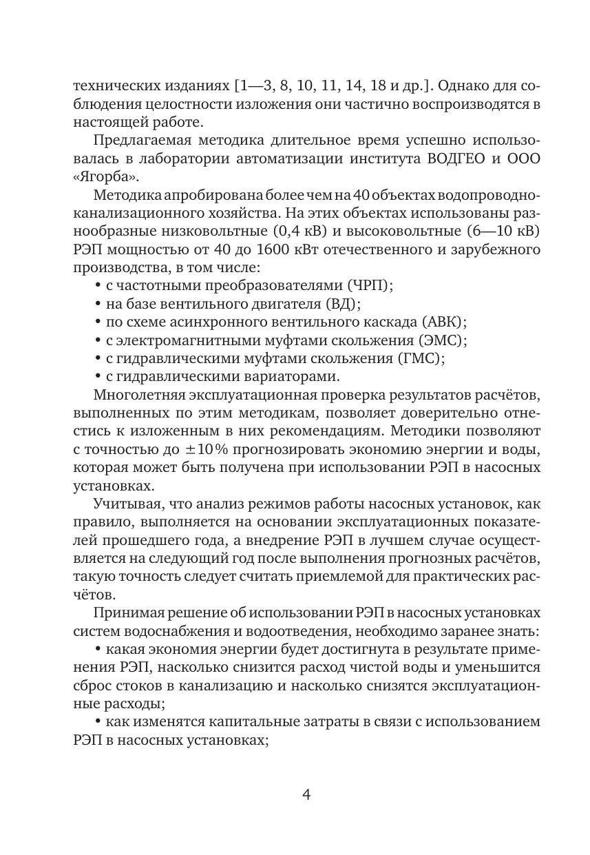 В основу настоящей методики положены разработки автора, относящиеся к использованию РЭП в водопроводных и канализационных насосных установках, выполненные в 1960—2010 гг. Она обобщает многолетние исследования автора в области энергосбережения и применения РЭП в насосных установках систем водоснабжения и водоотведения. Для инженеров и научных работников, специализирующихся в области водоснабжения и водоотведения. Может быть полезна специалистам, имеющим дело с насосными установками в других отраслях промышленности.