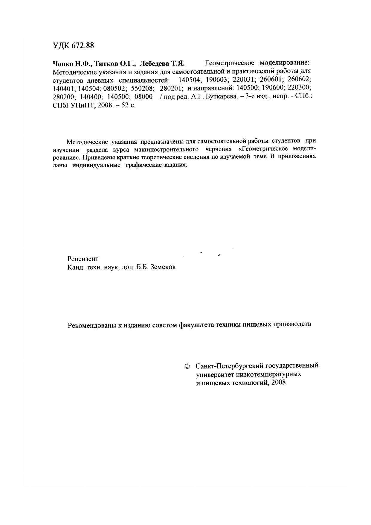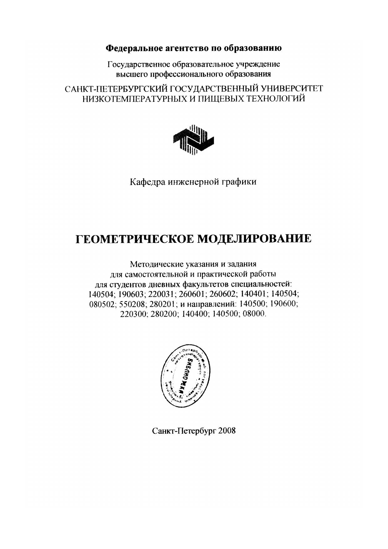 Геометрическое моделирование: Методические указания и задания для самостоятельной и практической работы