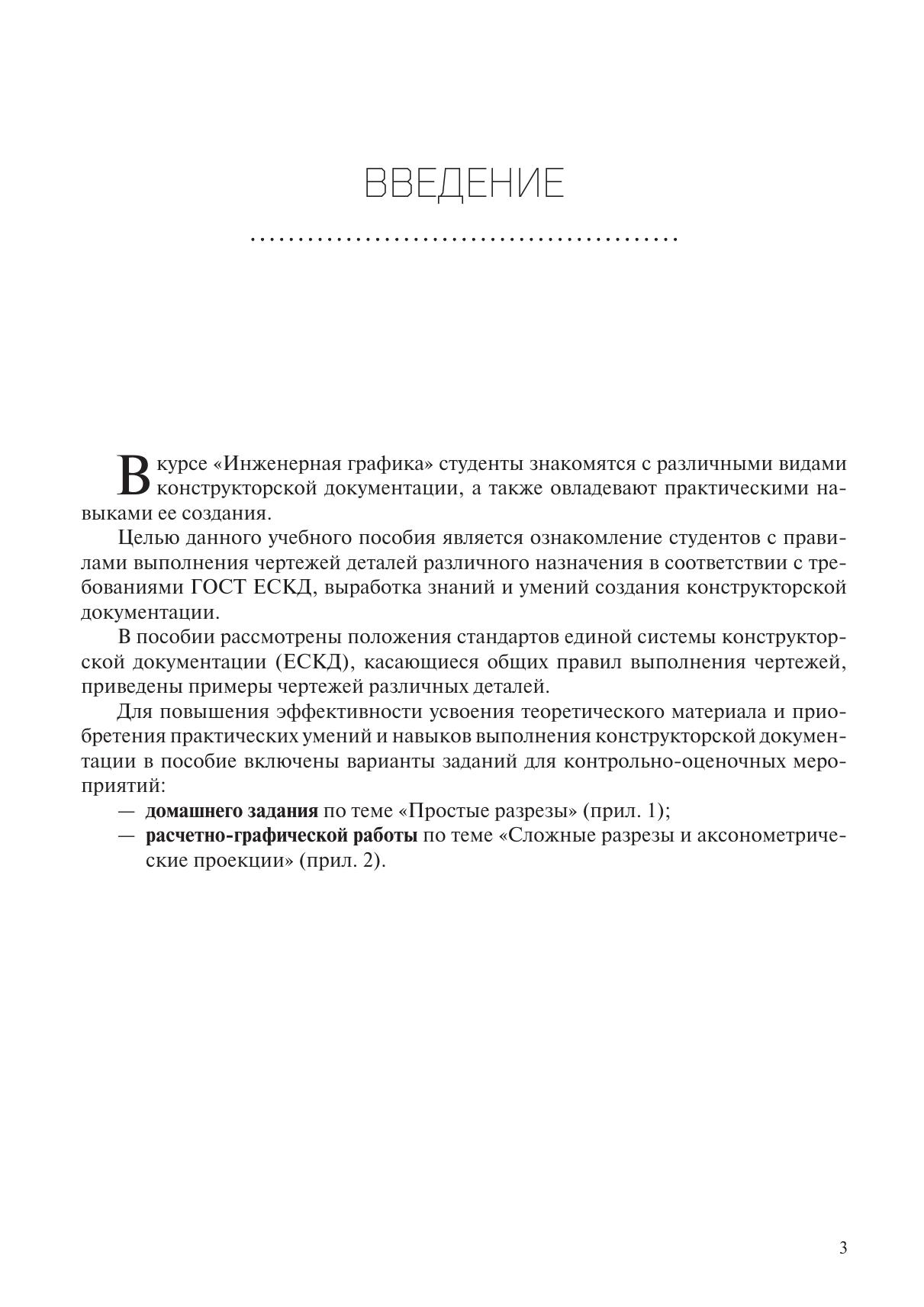 Учебное пособие содержит сведения по производству конструкторских чертежей, правила и примеры выполнения чертежей различных деталей. Представлены варианты заданий к домашним и расчетно-графической работам, а также примеры выполнения работ.