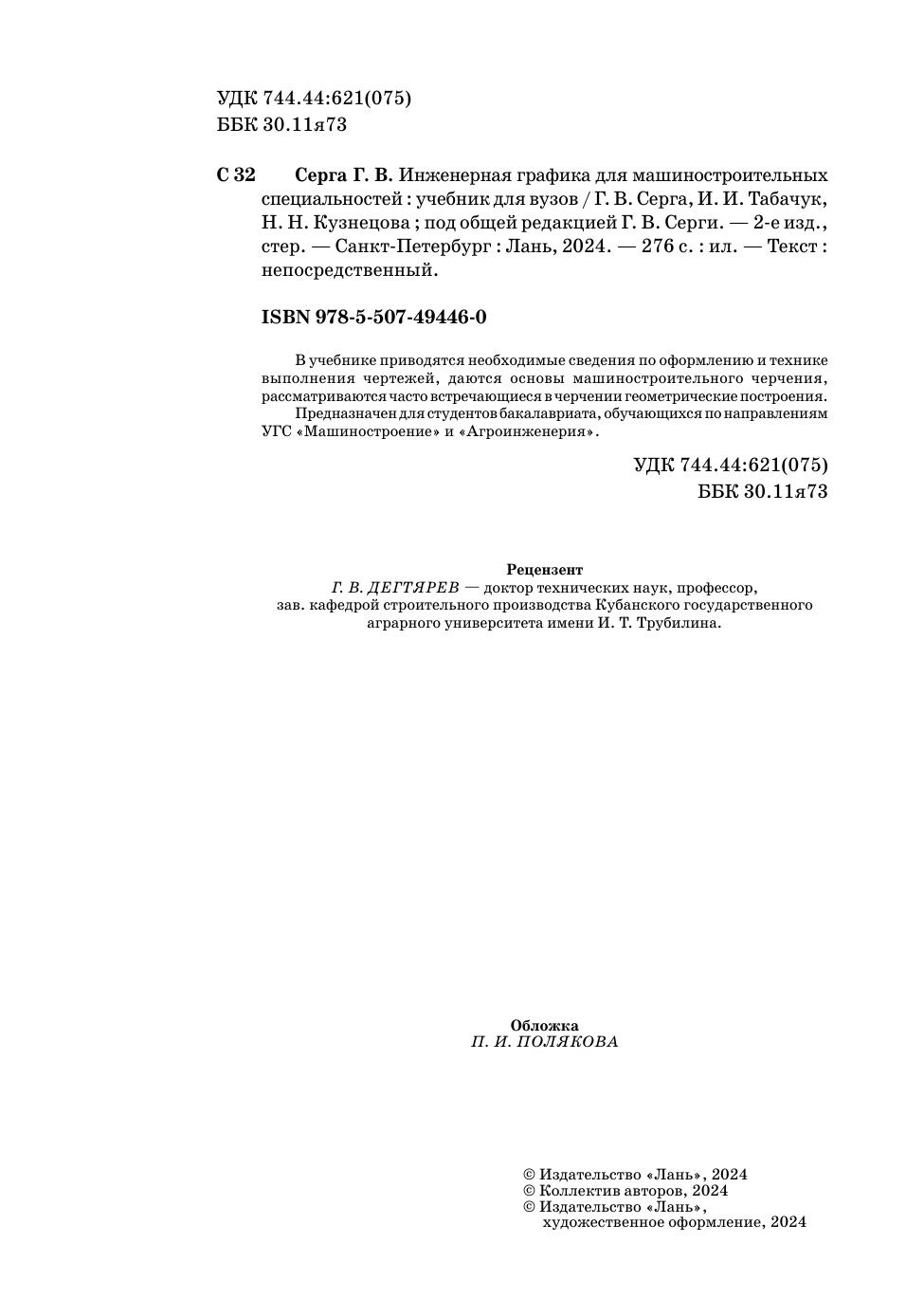 В учебнике приводятся необходимые сведения по оформлению и технике выполнения чертежей, даются основы машиностроительного черчения, рассматриваются часто встречающиеся в черчении геометрические построения. Предназначен для студентов бакалавриата, обучающихся по направлениям УГС «Машиностроение» и «Агроинженерия».