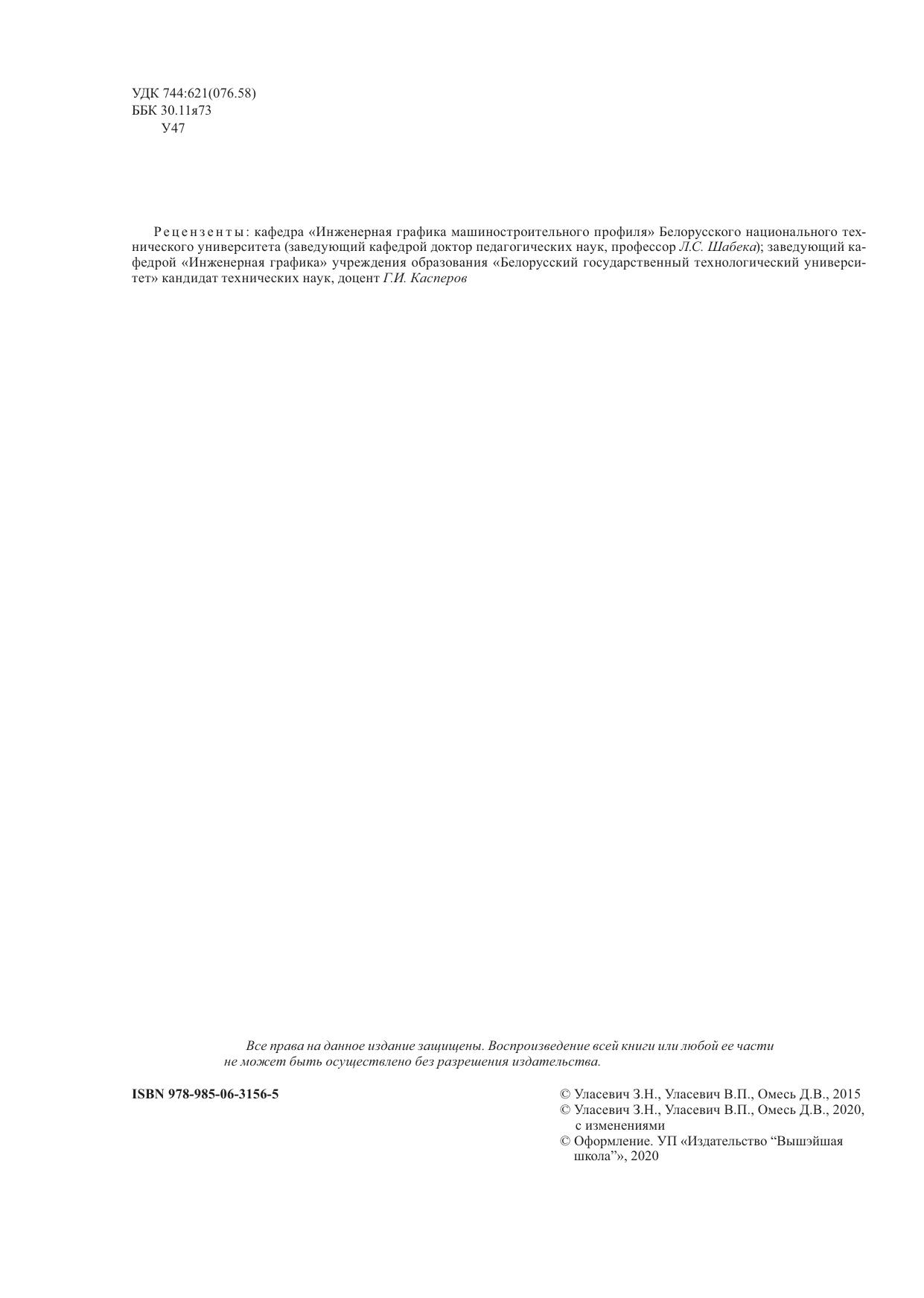 Пособие соответствует действующим образовательным стандартам для технических специальностей учреждений высшего образования, утвержденным Министерством образования Республики Беларусь. Материал систематизирован в виде таблиц, образцов выполнения графических заданий, примеров чертежей и спецификаций. Представлены качественные разработки деталировочных чертежей, выполненных на базе графического комплекса AutoCAD. Предыдущее издание вышло в 2015 г. Для студентов учреждений высшего образования по техническим специальностям. Может эффективно использоваться при самостоятельной подготовке, а также студентами заочной и дистанционной форм обучения. Содержание пособия согласуется с курсом «Черчение» в системе общего среднего, профессионально-технического образования, а также с курсом «Инженерная графика» в системе среднего специального образования. В целом пособие представляет инновационную форму обучения.