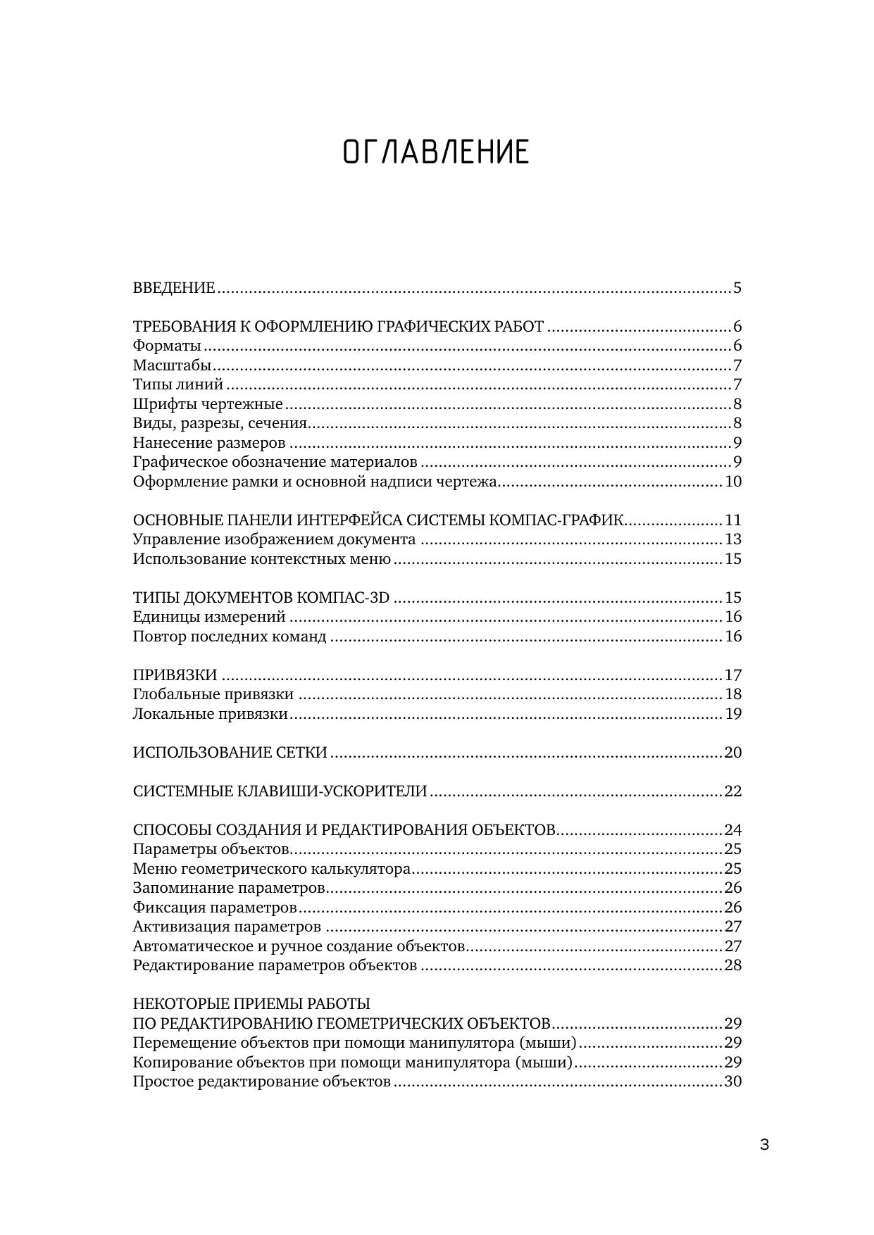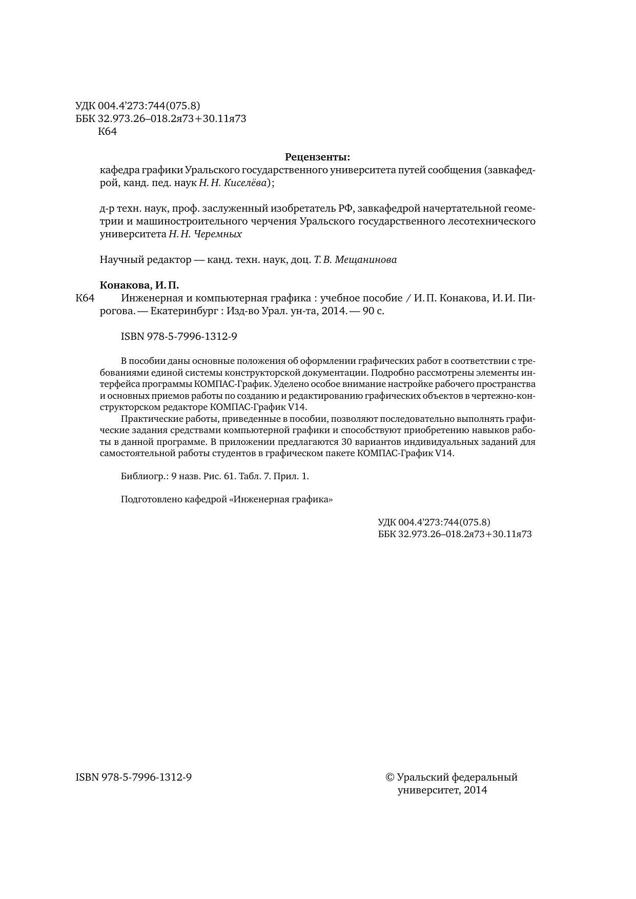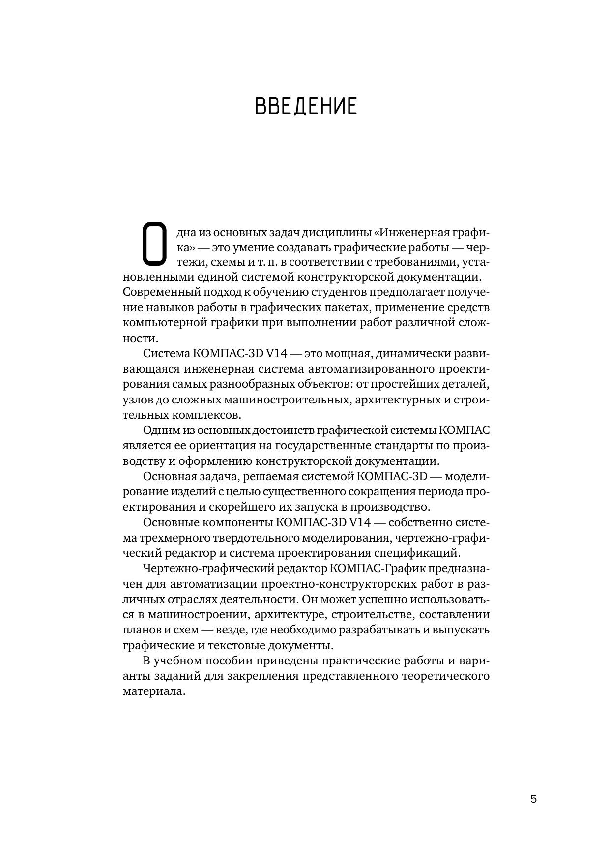 В пособии даны основные положения об оформлении графических работ в соответствии с требованиями единой системы конструкторской документации. Подробно рассмотрены элементы интерфейса программы КОМПАС-График. Уделено особое внимание настройке рабочего пространства и основных приемов работы по созданию и редактированию графических объектов в чертежно-конструкторском редакторе КОМПАС-График V14. Практические работы, приведенные в пособии, позволяют последовательно выполнять графические задания средствами компьютерной графики и способствуют приобретению навыков работы в данной программе. В приложении предлагаются 30 вариантов индивидуальных заданий для самостоятельной работы студентов в графическом пакете КОМПАС-График V14.