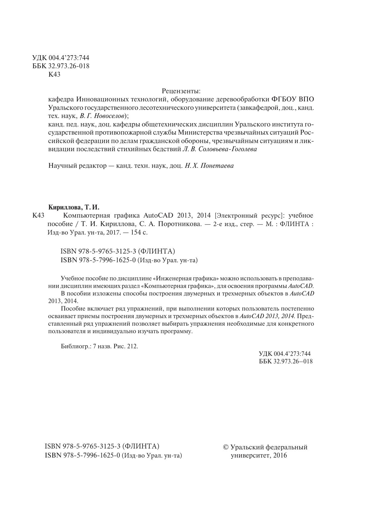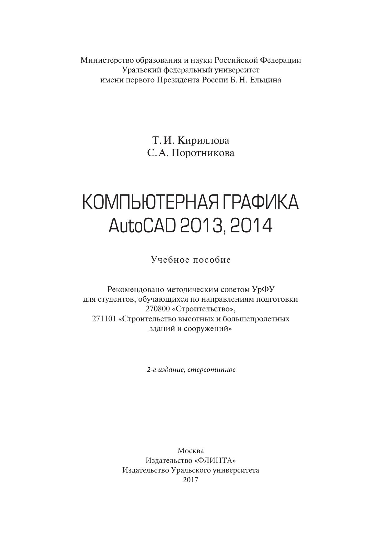 В пособии изложены способы построения двумерных и трехмерных объектов в AutoCAD 2013, 2014.