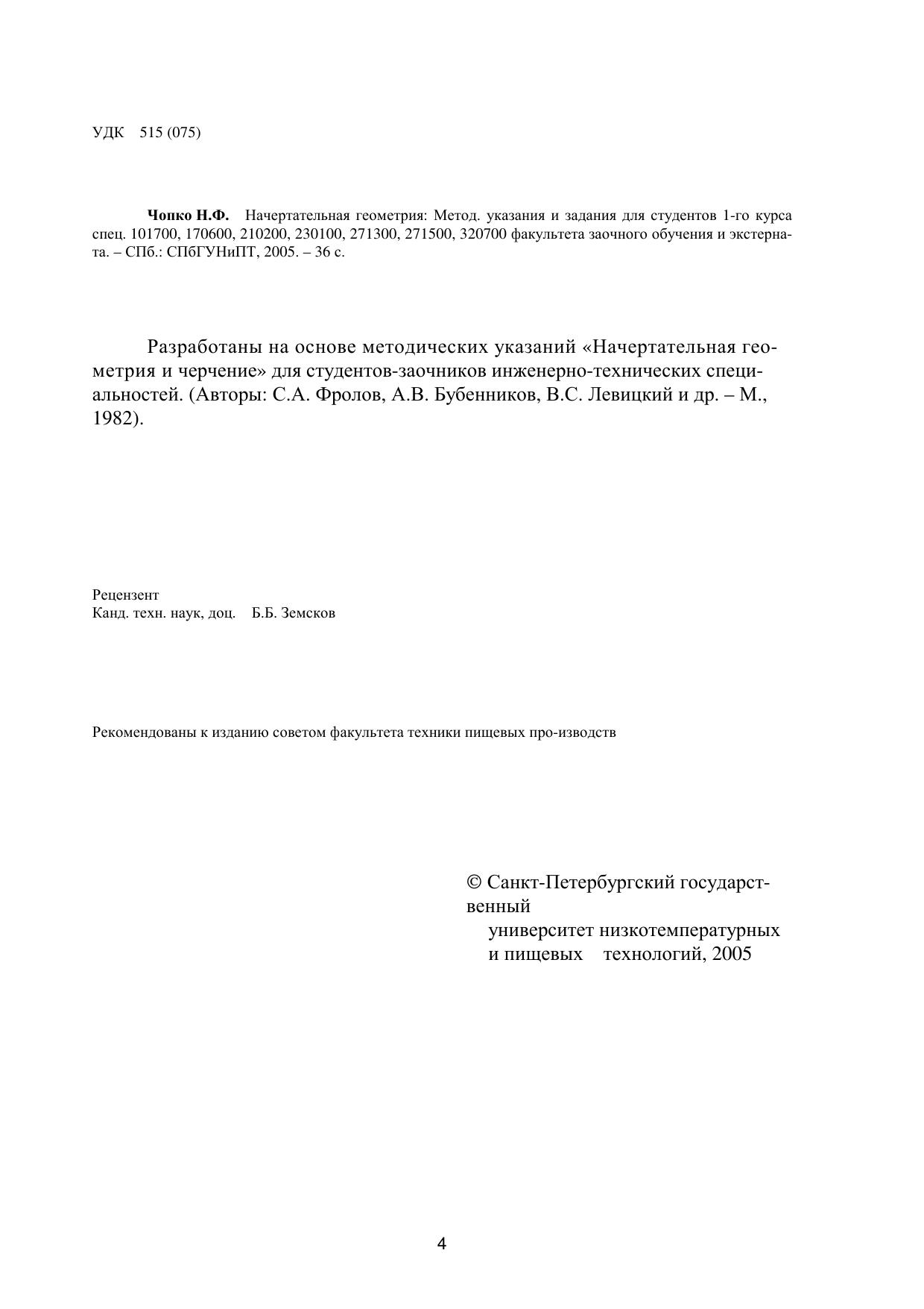 Разработаны на основе методических указаний «Начертательная геометрия и черчение» для студентов-заочников инженерно-технических специальностей. (Авторы: С.А. Фролов, А.В. Бубенников, В.С. Левицкий и др. – М., 1982).