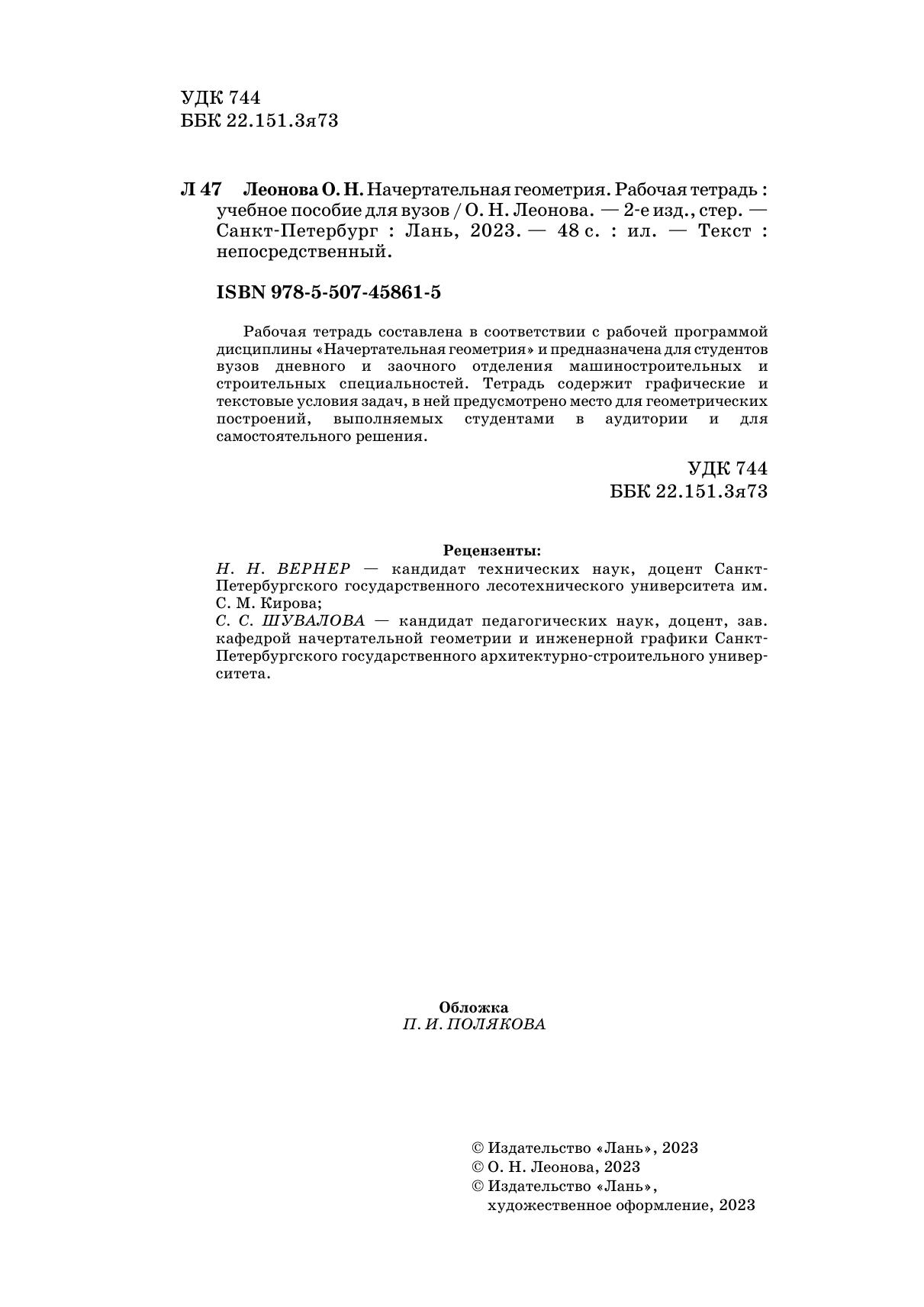Рабочая тетрадь составлена в соответствии с рабочей программой дисциплины «Начертательная геометрия» и предназначена для студентов дневного и заочного отделения машиностроительных и строительных специальностей. Тетрадь содержит графические и текстовые условия задач, в ней предусмотрено место для геометрических построений, выполняемых студентами в аудитории и для самостоятельного решения.