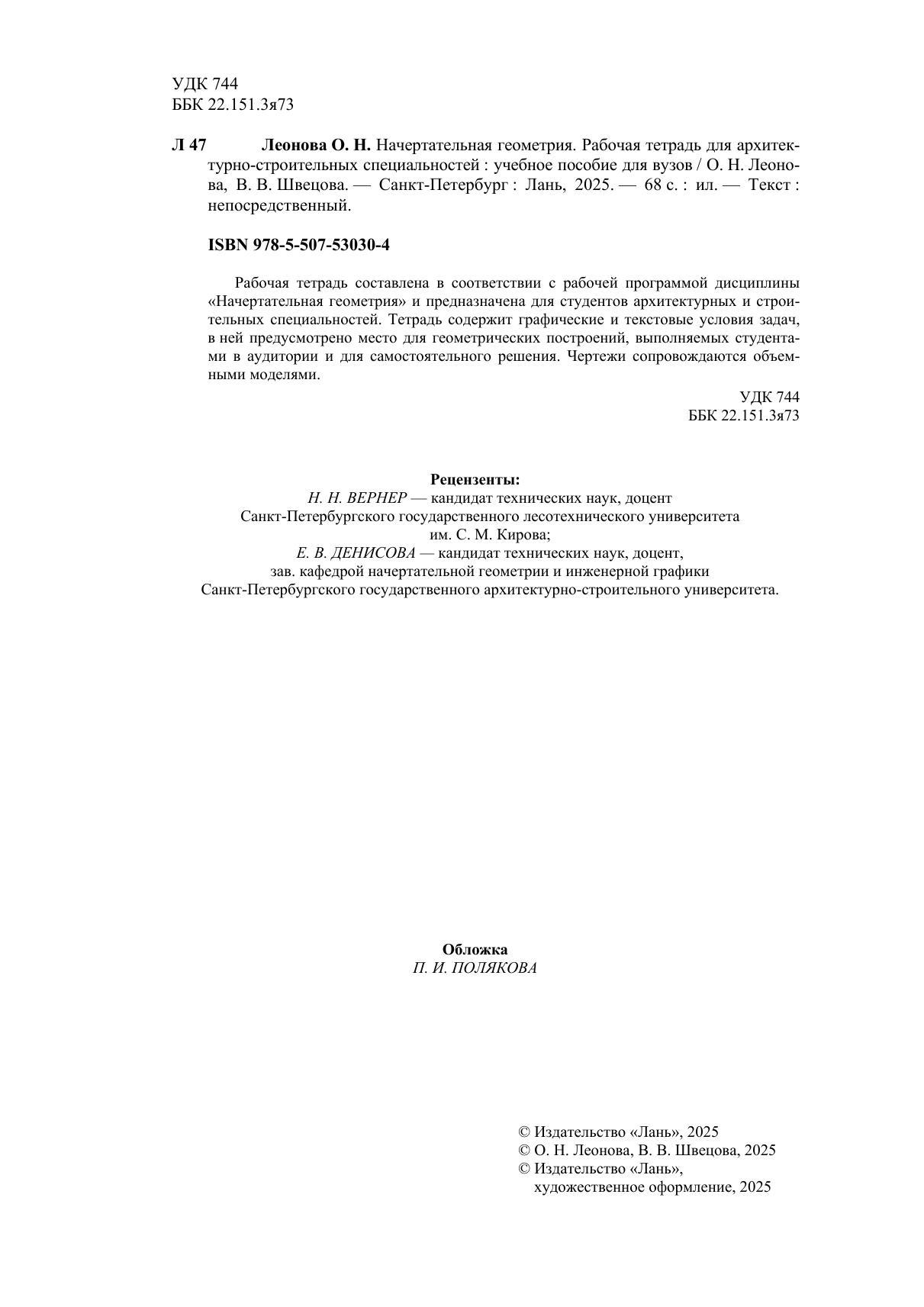 Рабочая тетрадь составлена в соответствии с рабочей программой дисциплины «Начертательная геометрия» и предназначена для студентов архитектурных и строительных специальностей. Тетрадь содержит графические и текстовые условия задач, в ней предусмотрено место для геометрических построений, выполняемых студентами в аудитории и для самостоятельного решения. Чертежи сопровождаются объемными моделями.