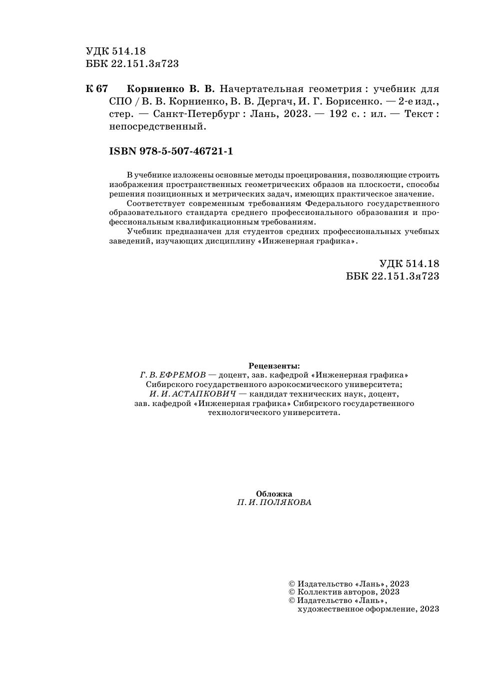 В учебнике изложены основные методы проецирования, позволяющие строить изображения пространственных геометрических образов на плоскости, способы решения позиционных и метрических задач, имеющих практическое значение. Соответствует современным требованиям Федерального государственного образовательного стандарта среднего профессионального образования и профессиональным квалификационным требованиям. Учебник предназначен для студентов средних профессиональных учебных заведений, изучающих дисциплину «Инженерная графика».