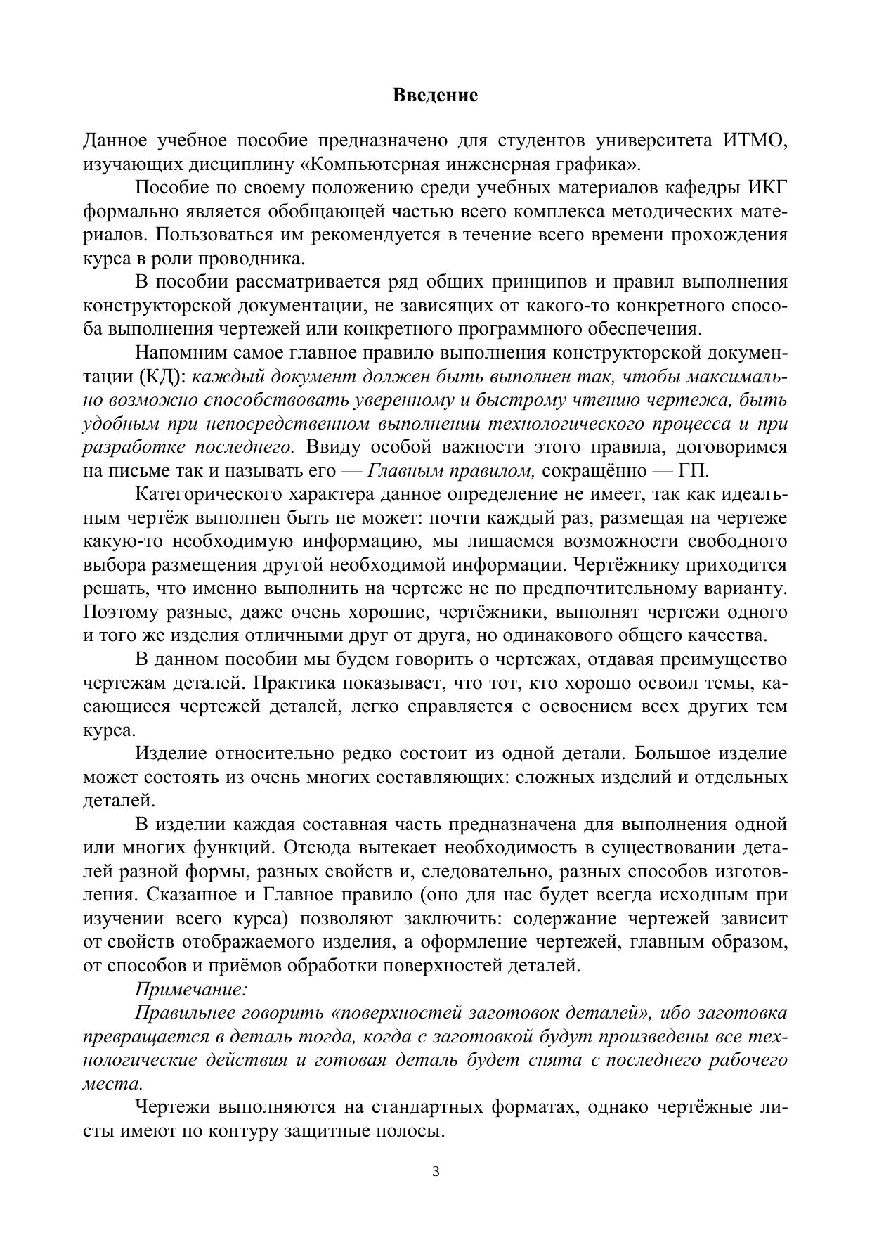 Учебное пособие предназначено для студентов всех направлений обучения, изучающих дисциплину «Компьютерная инженерная графика». Рекомендуется к использованию в течение всего периода обучения в качестве основного направляющего материала при работе с учебно-методическими материалами и другими материалами, рекомендованными кафедрой ИКГ.