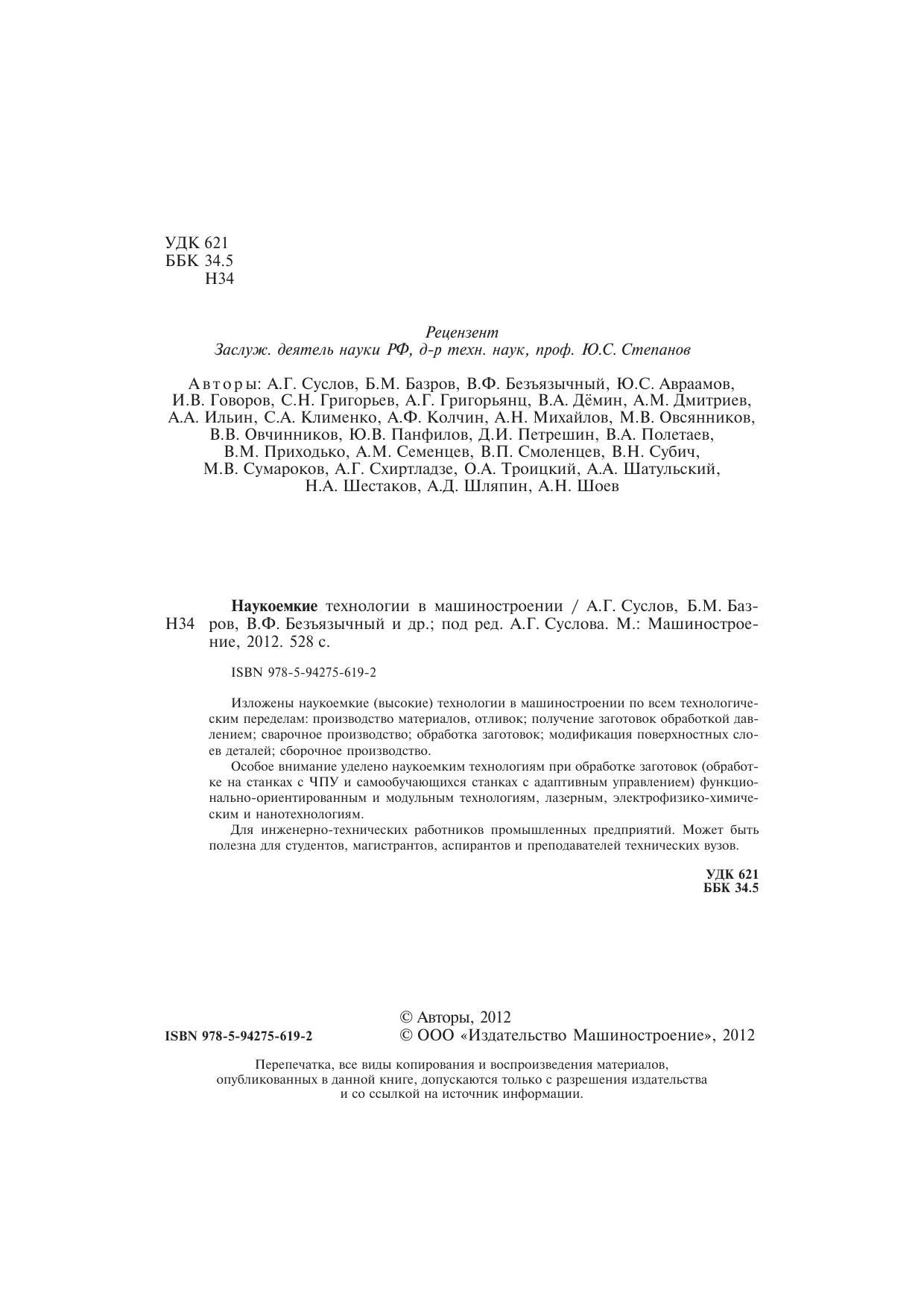 Авторы: Суслов А.Г., Базров Б.М., Безъязычный В.Ф., Авраамов Ю.С.