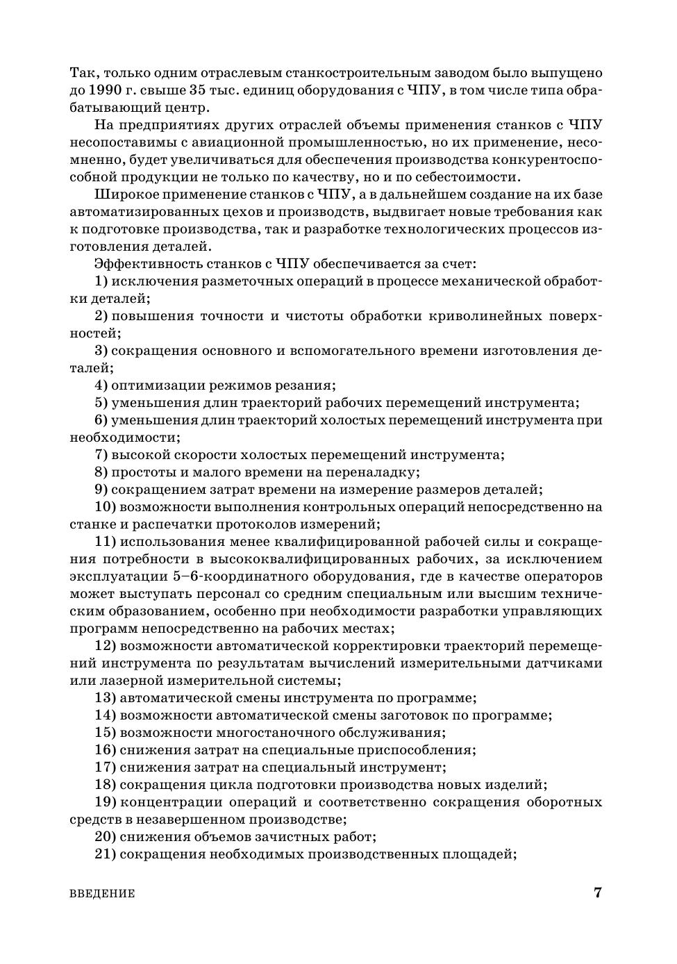 Приведены основные типы оборудования с ЧПУ для мелкосерийного и серийного типа производств. Рассмотрены особенности их конструкций, дополнительного оснащения и технологические возможности. Обращено особое внимание на широкое применение полимербетона и даже блоков натурального гранита для корпусных деталей, линейных приводов и электрошпинделей. Рассмотрены особенности их нагрузочных характеристик. Приведены современные инструментальные материалы, методы и средства интенсификации режимов резания, обоснованы выбор инструмента и направления работ по снижению расхода вольфрама. Рассмотрены особенности конструкций хвостовиков шпиндельной оснастки и инструмента, а также вопросы подготовки инструментальных наладок к работе. Приведены конструкции шпиндельной оснастки и приводного инструмента для расширения технологических возможностей многоцелевых станков.