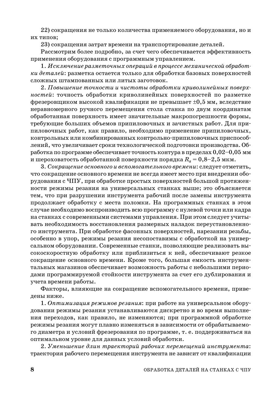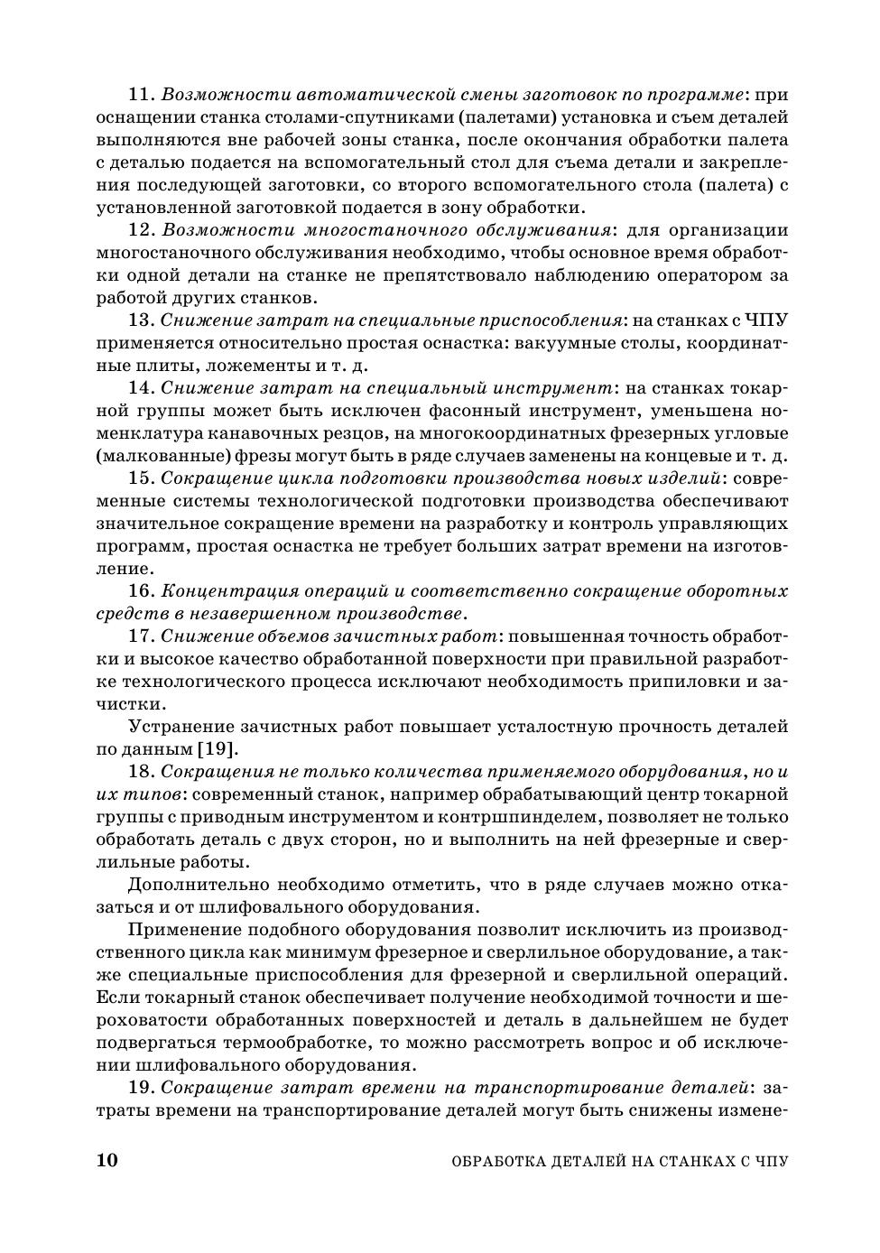 В учебном пособии приведены основные типы оборудования с ЧПУ для мелкосерийного и серийного типа производств. Рассмотрены особенности их конструкций, дополнительного оснащения и технологические возможности. Обращено особое внимание на широкое применение полимербетона (гранитана) и даже блоков натурального гранита для корпусных деталей (станин), линейных приводов и электрошпинделей. Рассмотрены особенности их нагрузочных характеристик. Приведены современные инструментальные материалы, методы и средства интенсификации режимов резания, обоснованы выбор инструмента и направления работ по снижению расхода вольфрама. Рассмотрены особенности конструкций хвостовиков шпиндельной оснастки и инструмента, а так же вопросы подготовки инструментальных наладок к работе. Приведены конструкции шпиндельной оснастки и приводного инструмента для расширения технологических возможностей многоцелевых станков. Даны рекомендации по оценке технологичности обрабатываемых поверхностей на многоцелевых станках. Показано различие критериев технологичности для программного и универсального оборудования. Соответствует современным требованиям Федерального государственного образовательного стандарта среднего профессионального образования и профессиональным квалификационным требованиям. Учебное пособие предназначено студентам средних профессиональных машиностроительных специальностей.