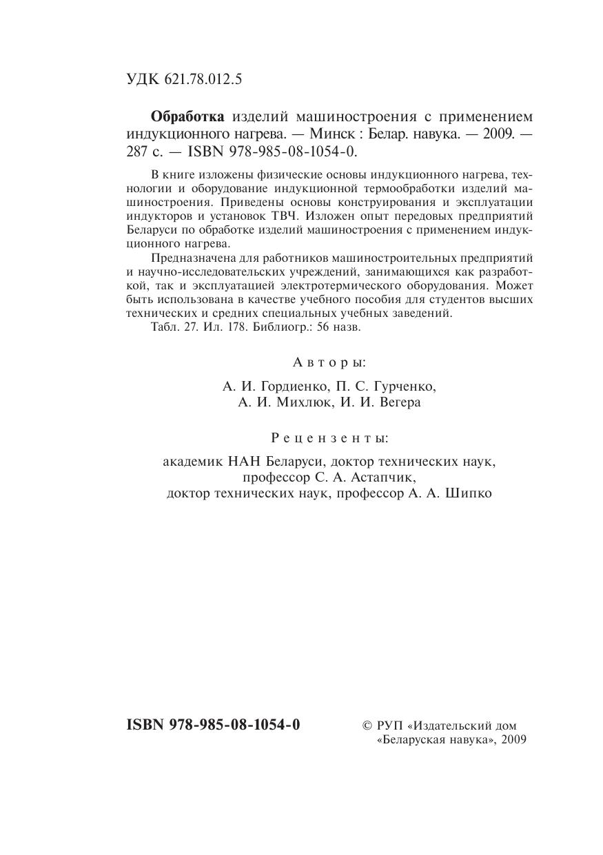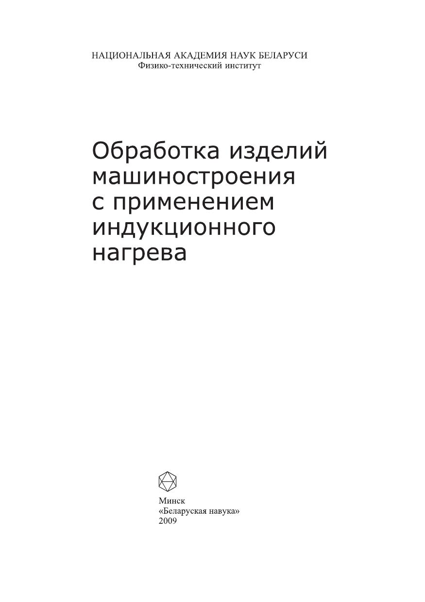 В книге изложены физические основы индукционного нагрева, технологии и оборудование индукционной термообработки изделий машиностроения. Приведены основы конструирования и эксплуатации индукторов и установок ТВЧ. Изложен опыт передовых предприятий Беларуси по обработке изделий машиностроения с применением индукционного нагрева. Предназначена для работников машиностроительных предприятий и научно-исследовательских учреждений, занимающихся как разработкой, так и эксплуатацией электротермического оборудования. Может быть использована в качестве учебного пособия для студентов высших технических и средних специальных учебных заведений.