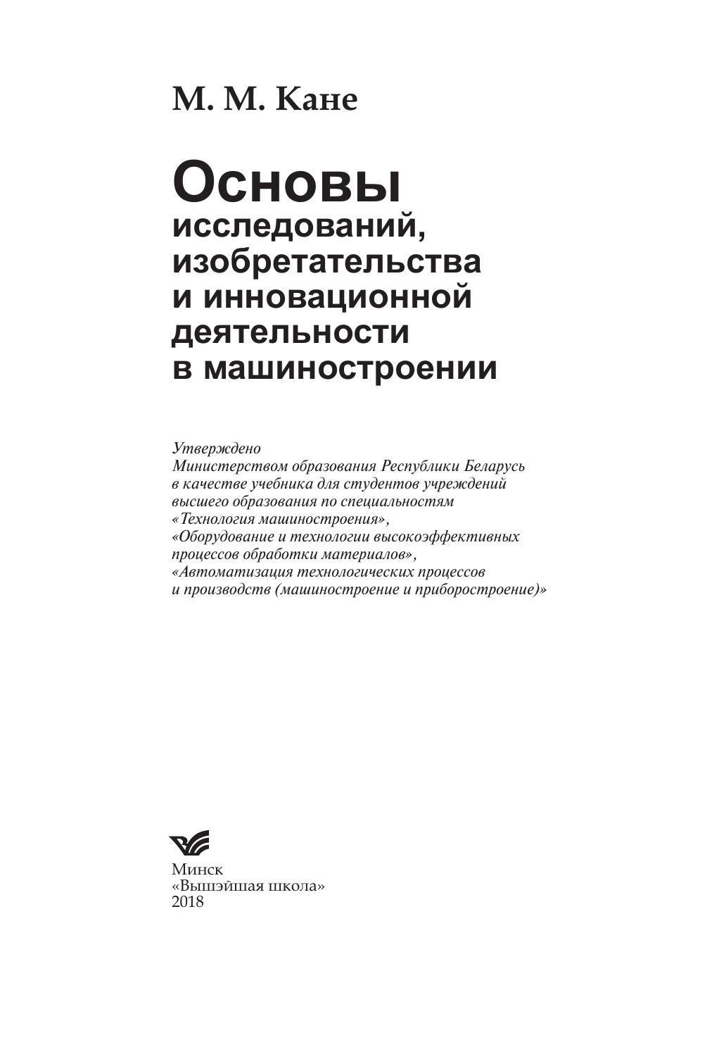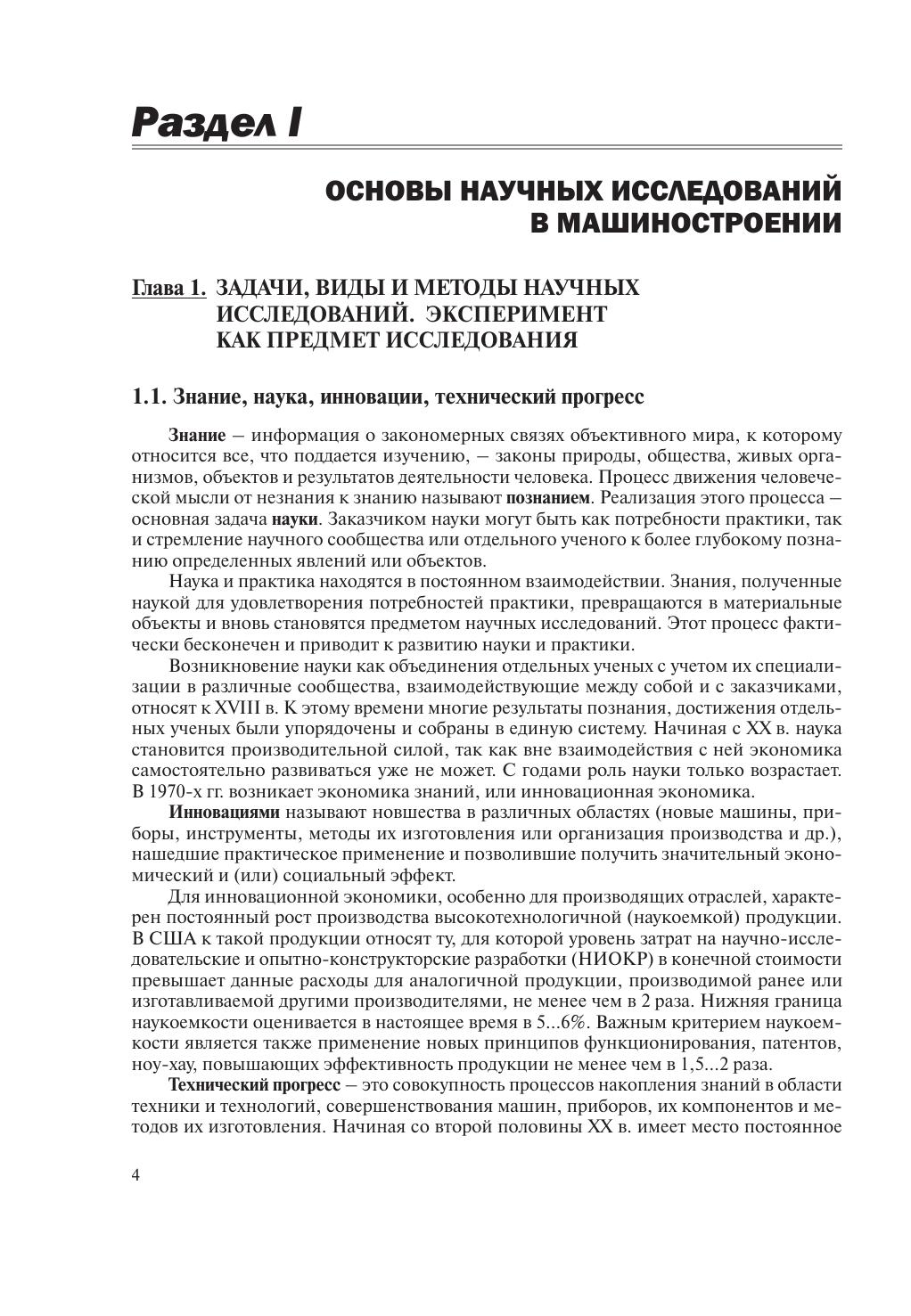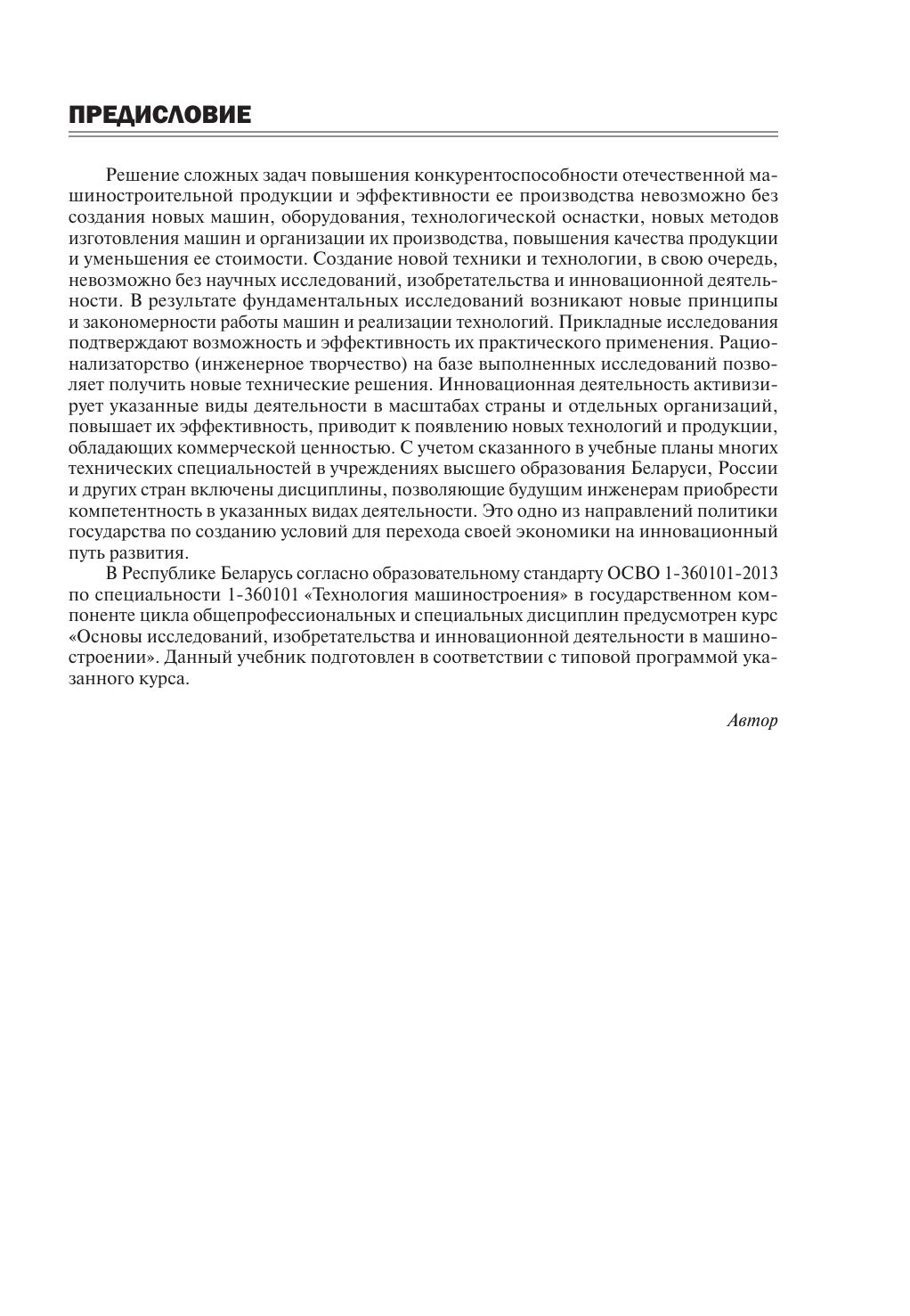 Рассмотрены задачи, виды и методы научных исследований, основные положения теории ошибок, корреляционного и регрессионного анализа, планирования и обработки результатов одно-и многофакторного экспериментов, методы измерений некоторых физико-механических и эксплуатационных свойств материалов, деталей, инструментов и технологических систем, статистические методы анализа точности и стабильности технологических процессов. Показаны основные методы инженерного творчества, принципы функционально-физического анализа технических объектов, различные методы изобретательства (мозговая атака, морфологический анализ, функционально-стоимостной анализ, ТРИЗ). Даны основные понятия патентоведения. Описаны цели, методы, организационные формы, основы экономики инновационной деятельности. Для студентов учреждений высшего образования машиностроительных специальностей, научных и технических специалистов в области машиностроения.