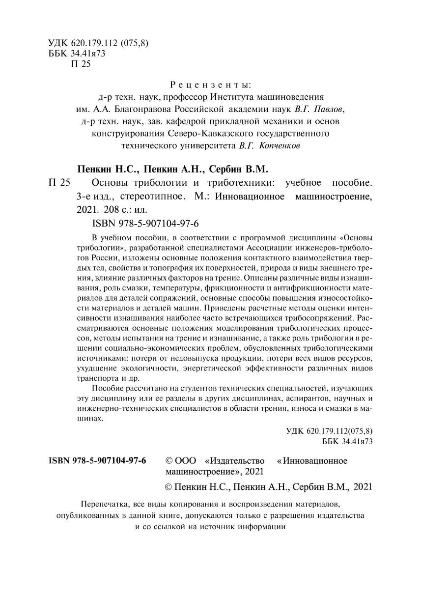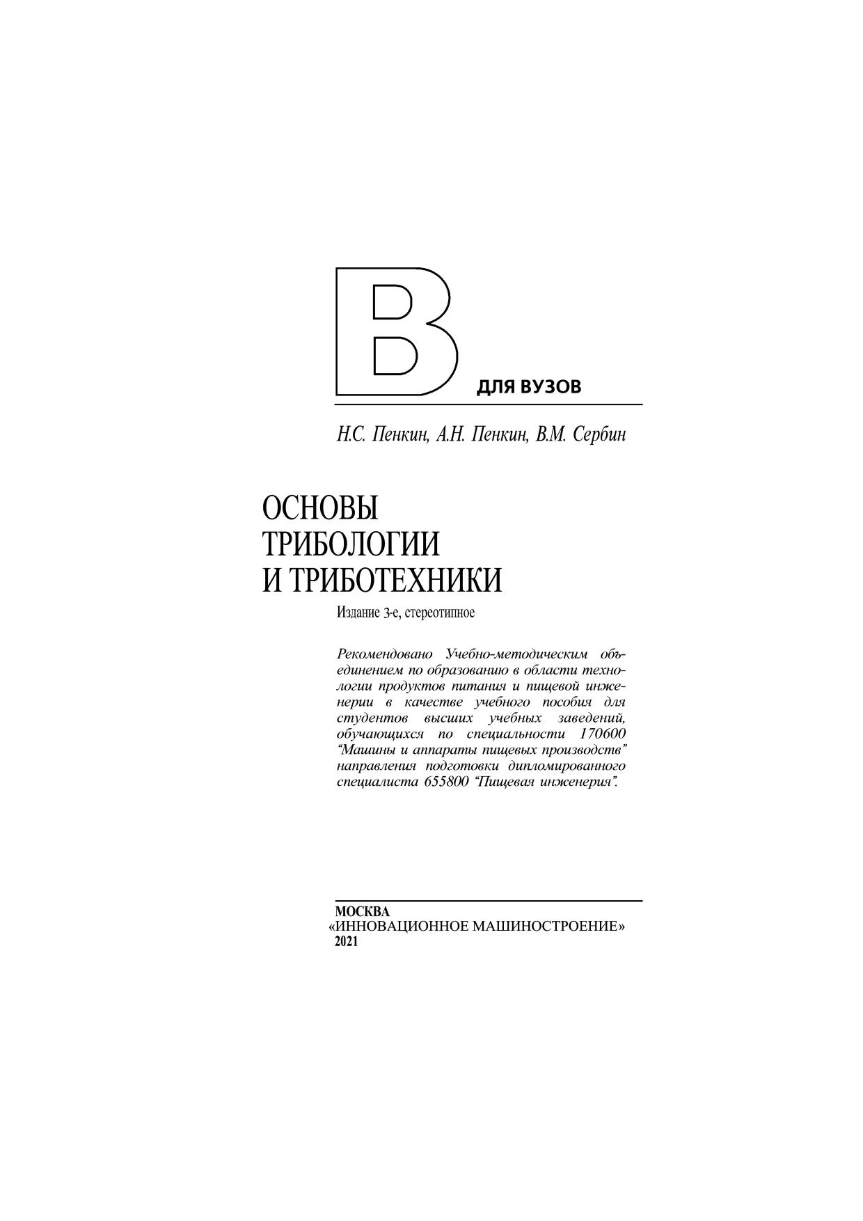 Пособие рассчитано на студентов технических специальностей, изучающих эту дисциплину или ее разделы в других дисциплинах, аспирантов, научных и инженерно-технических специалистов в области трения, износа и смазки в машинах.