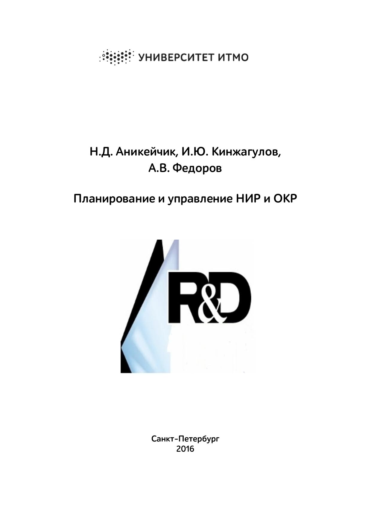 Рассмотрены основные подходы к планированию и управлению научно-исследовательской и опытно-конструкторской работами. Изложены основы организации НИОКР, проблематика и особенности их проведения. Основное внимание уделено характеристике содержания процесса НИОКР, в том числе процессам их прогнозирования, планирования, управления, контроля и обеспечения.