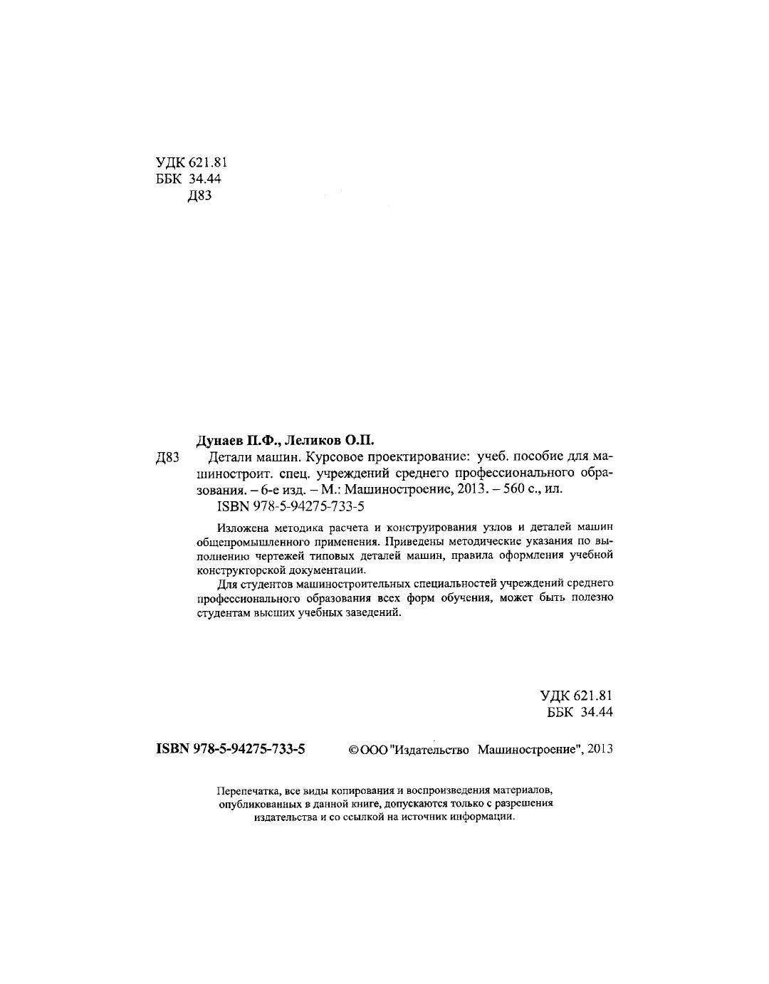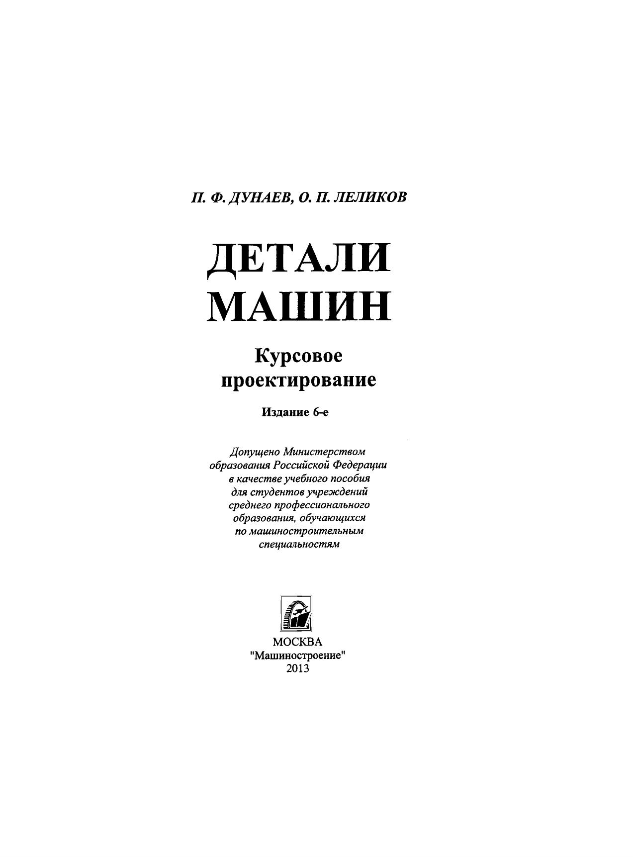 Изложена методика расчета и конструирования узлов и деталей машин общепромышленного применения. Приведены методические указания по вы¬полнению чертежей типовых деталей машин, правила оформления учебной конструкторской документации. Для студентов машиностроительных специальностей учреждений среднего профессионального образования всех форм обучения, может быть полезно студентам высших учебных заведений.