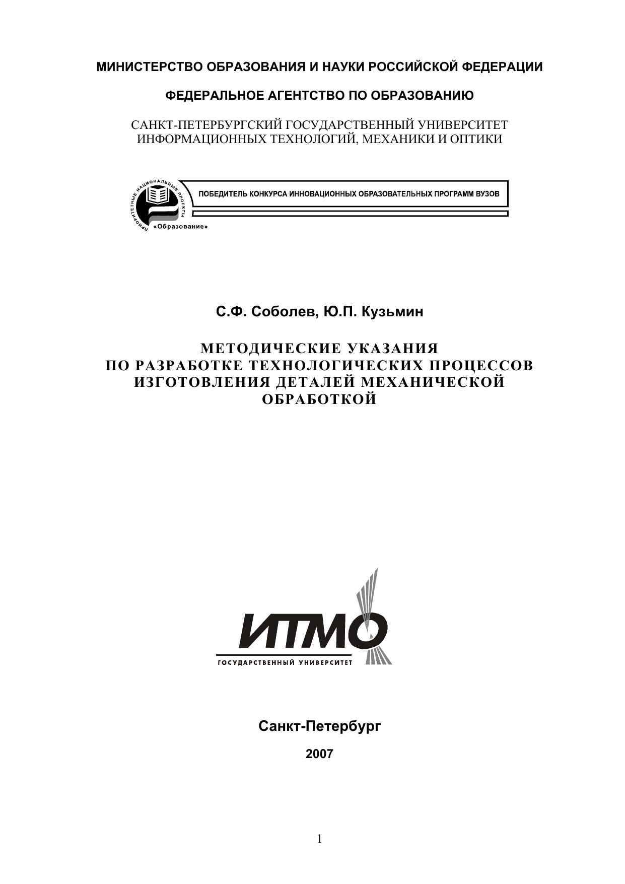 Методические указания по по разработке технологических процессов изготовления деталей механической обработкой