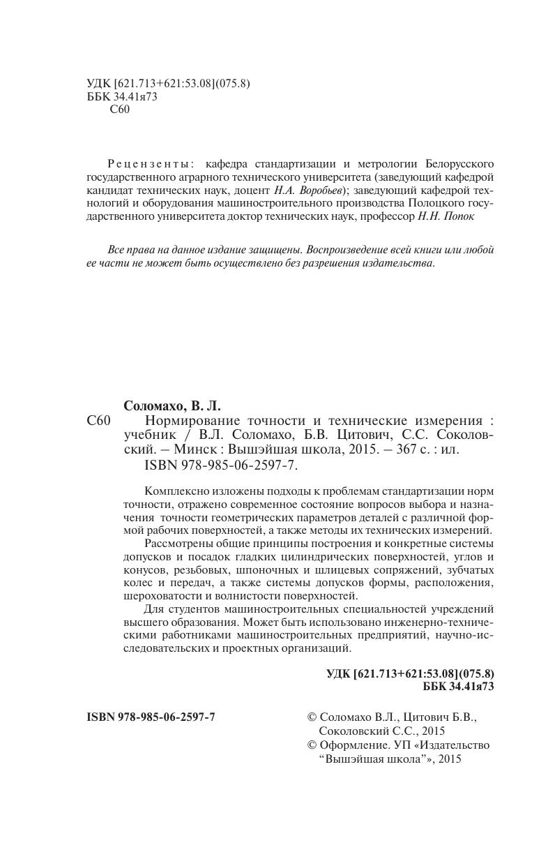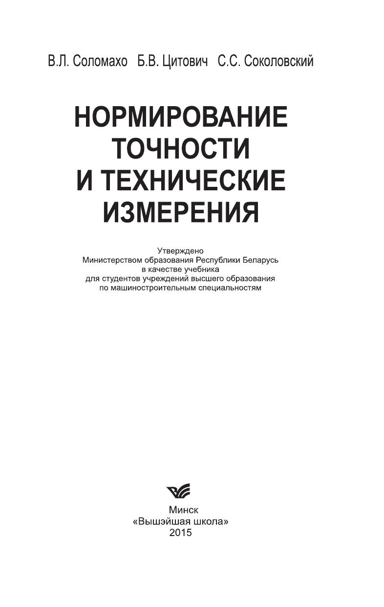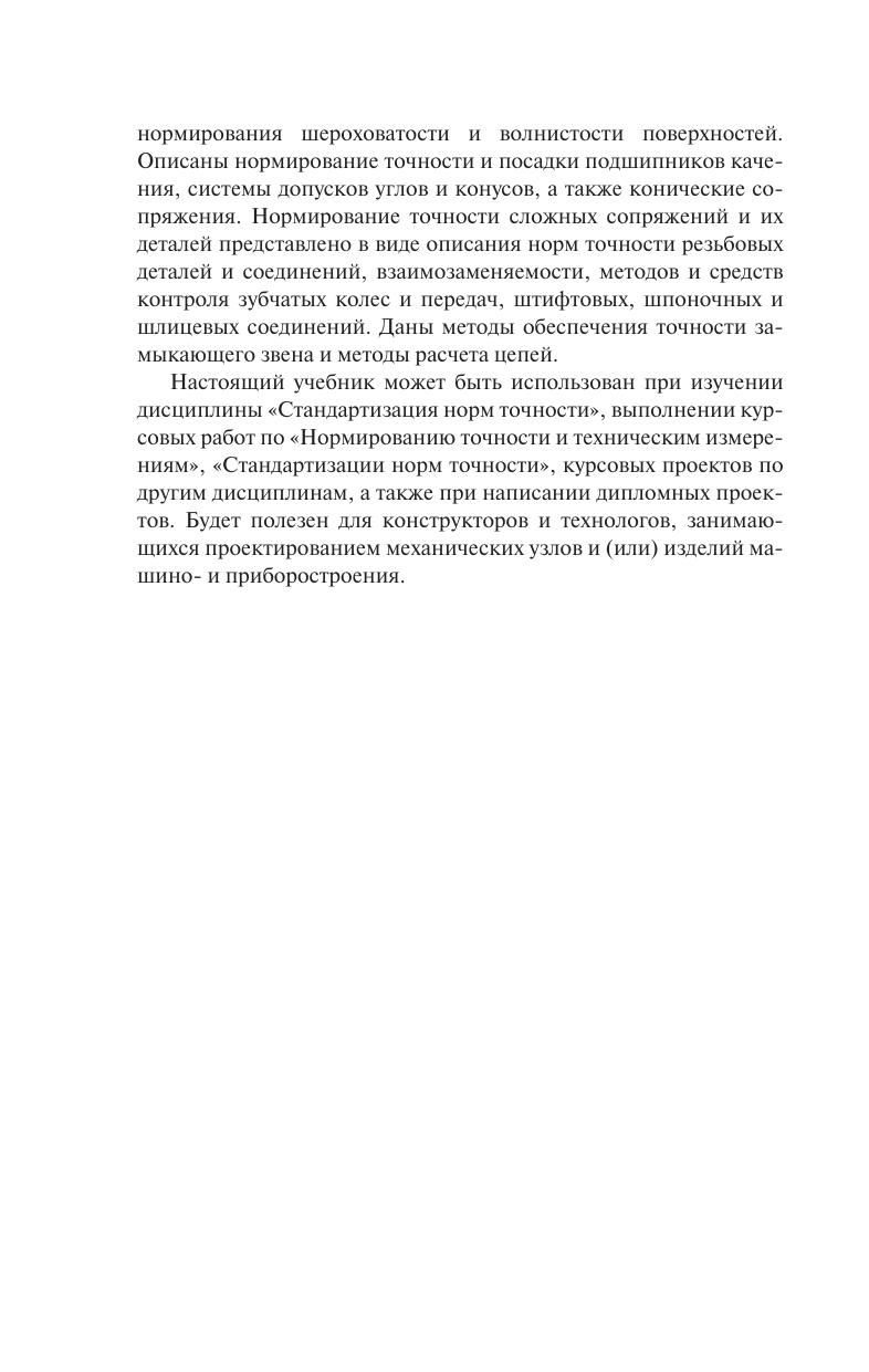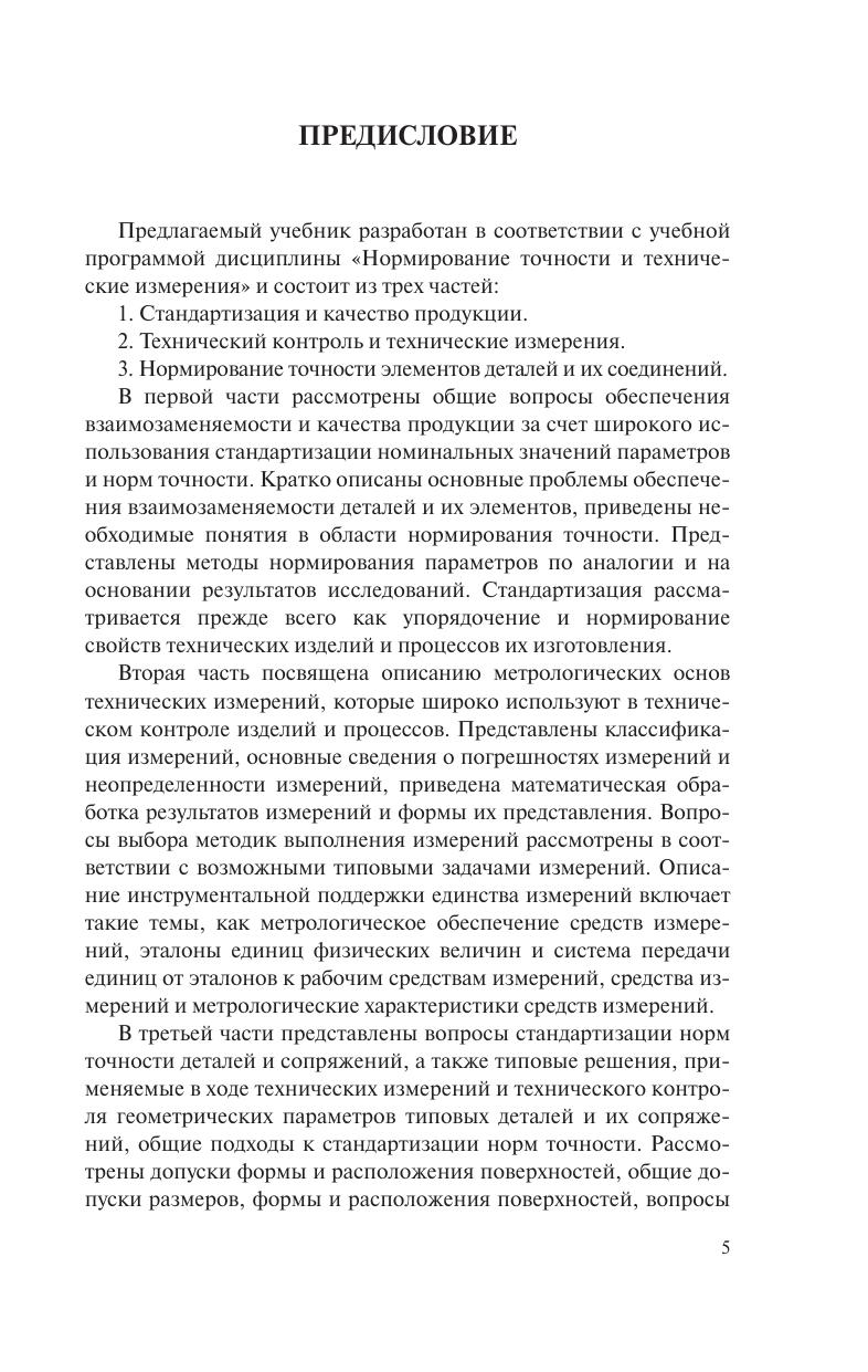 Комплексно изложены подходы к проблемам стандартизации норм точности, отражено современное состояние вопросов выбора и назначения точности геометрических параметров деталей с различной формой рабочих поверхностей, а также методы их технических измерений.