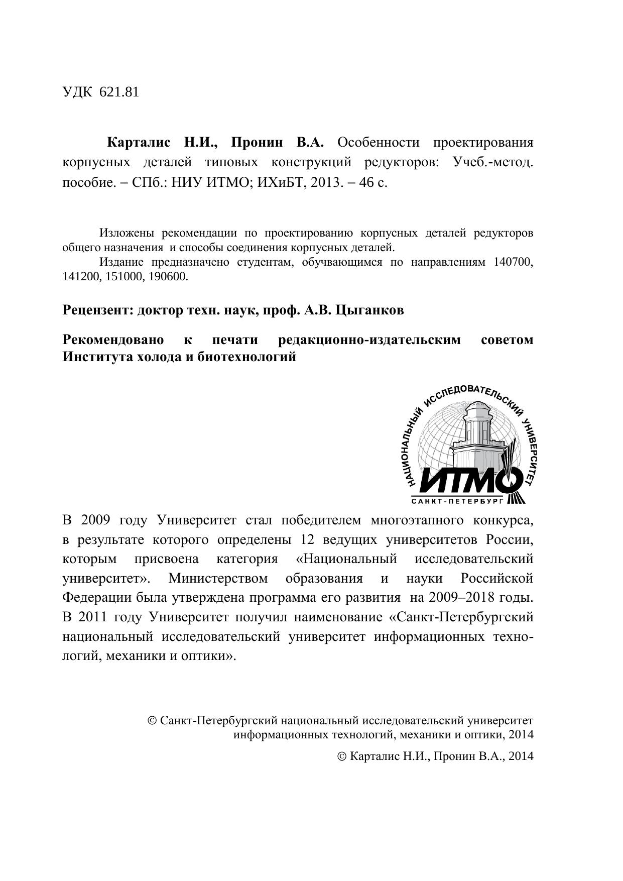 Изложены рекомендации по проектированию корпусных деталей редукторов общего назначения и способы соединения корпусных деталей. Издание предназначено студентам, обучвающимся по направлениям 140700, 141200, 151000, 190600.