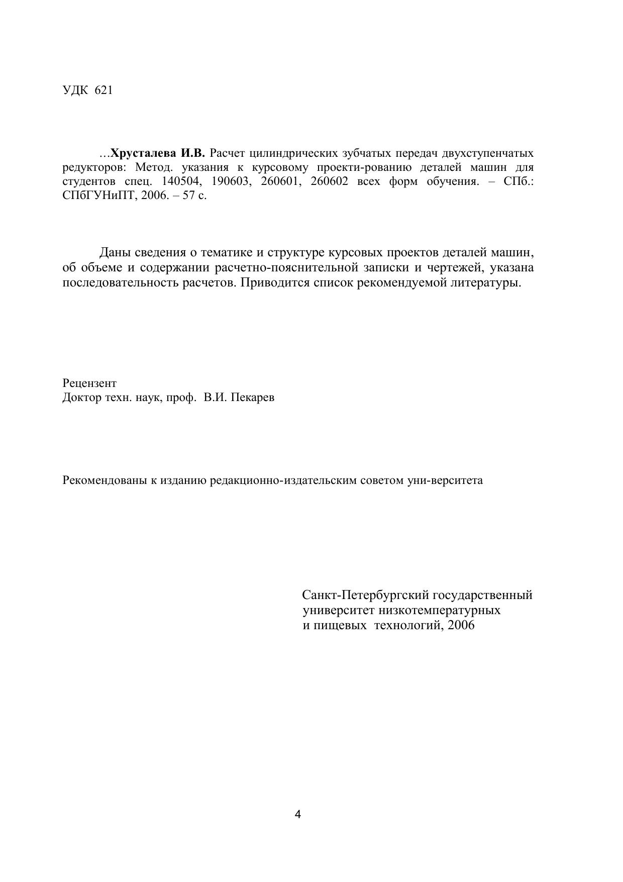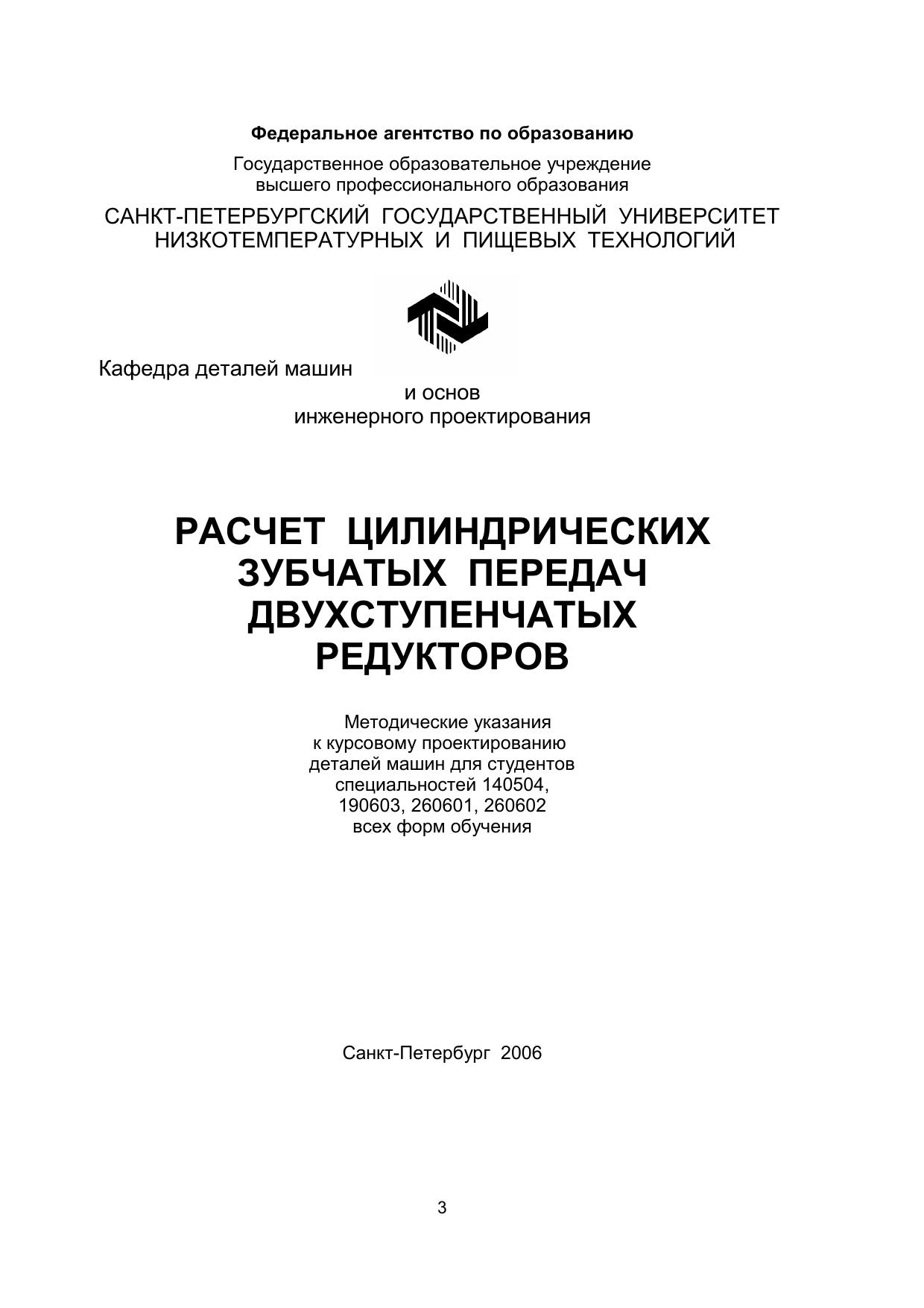 Расчет цилиндрических зубчатых передач двухступенчатых редукторов: Методические указания к курсовому проектированию деталей машин