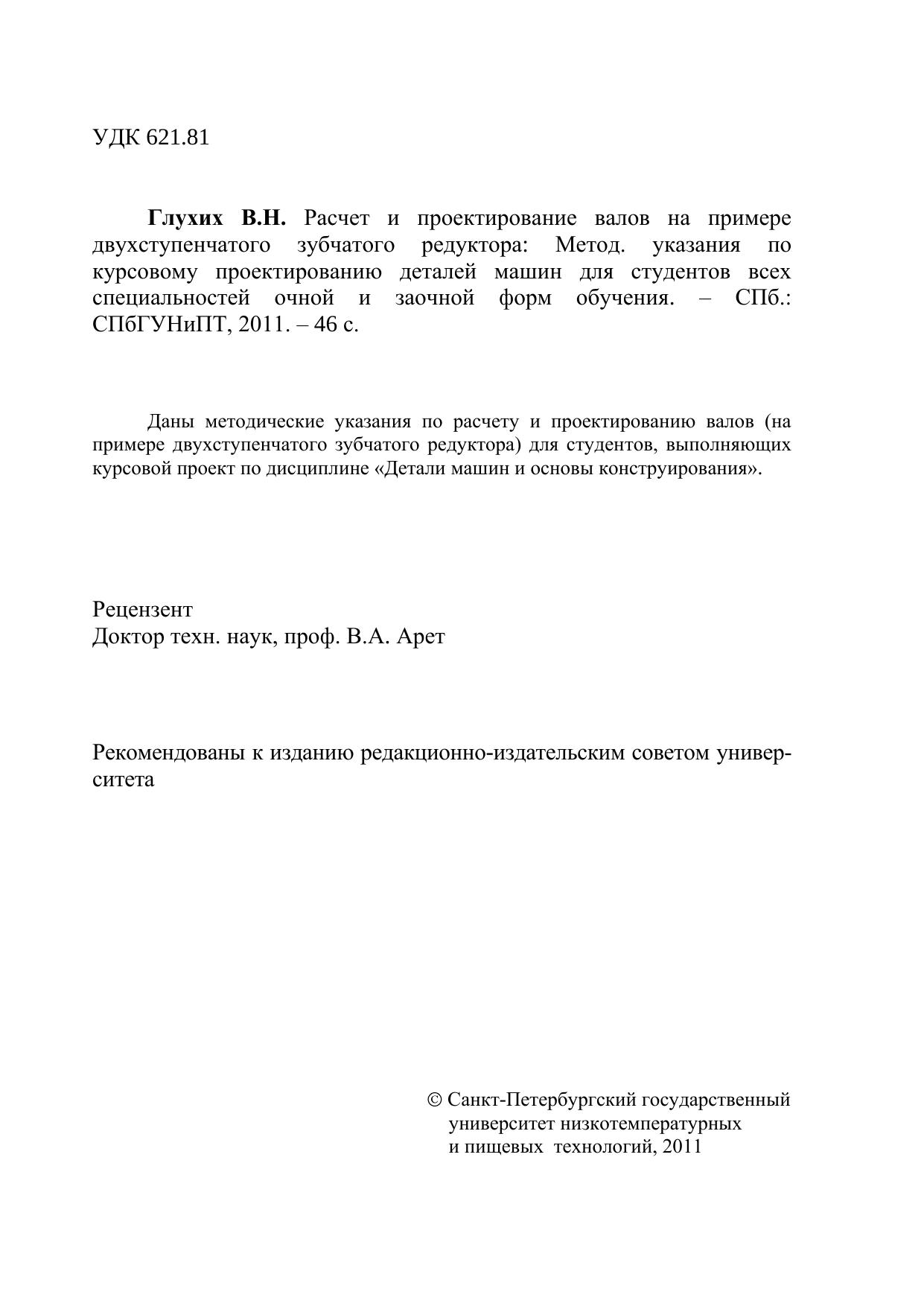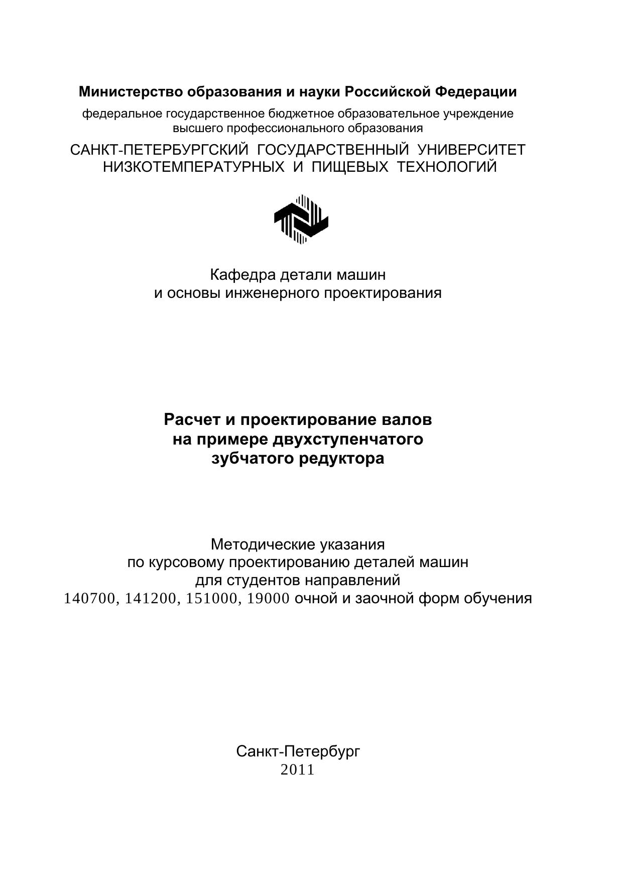 Даны методические указания по расчету и проектированию валов (на примере двухступенчатого зубчатого редуктора) для студентов, выполняющих курсовой проект по дисциплине «Детали машин и основы конструирования».