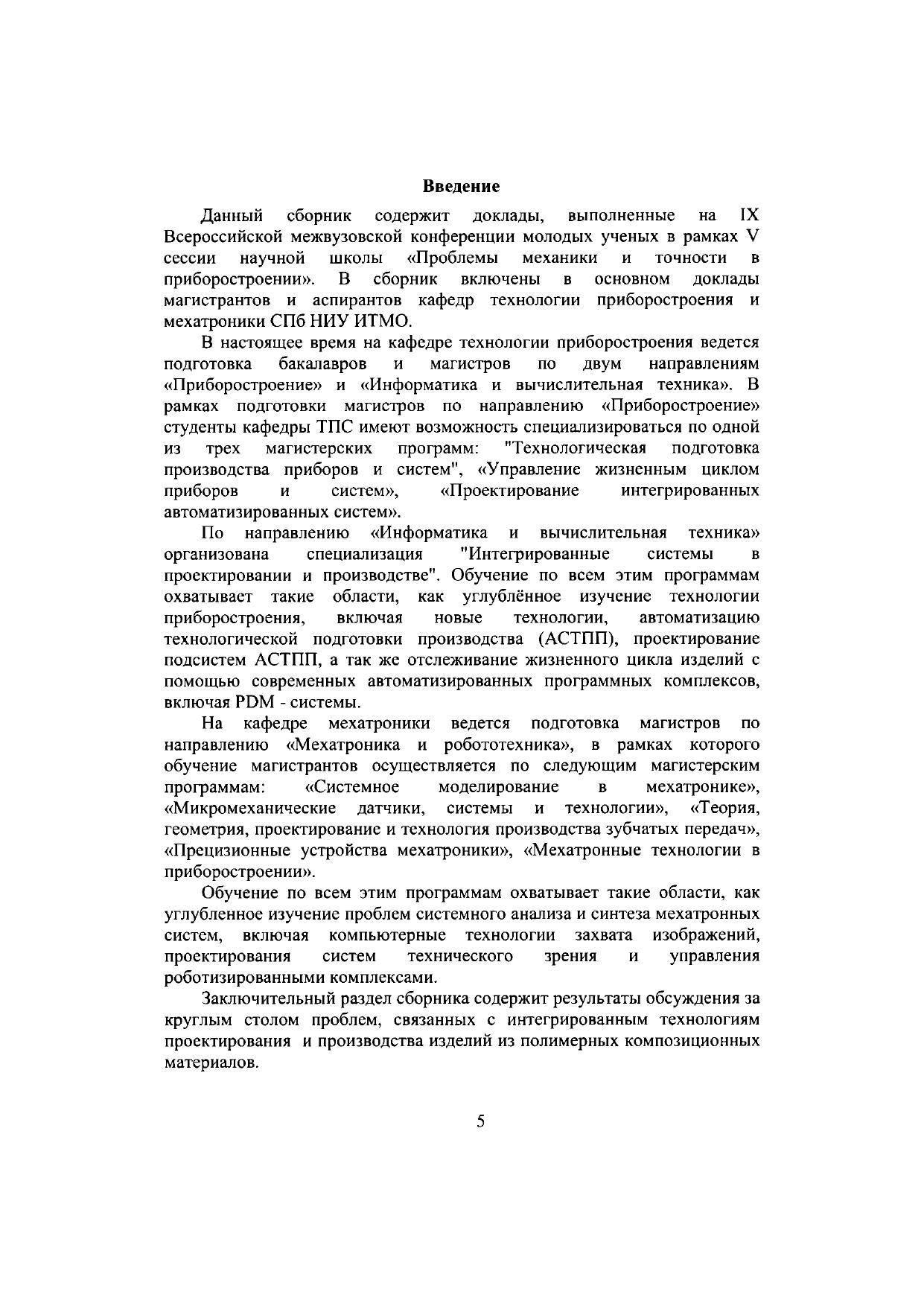 IX Всероссийская межвузовская конференция молодых ученых. V сессия научной школы Проблемы механики и точности в приборостроении. Выпуск 1-й. Сборник докладов