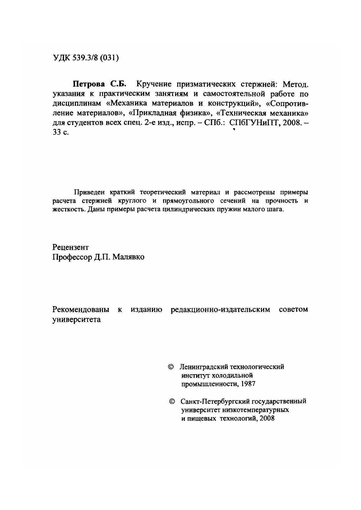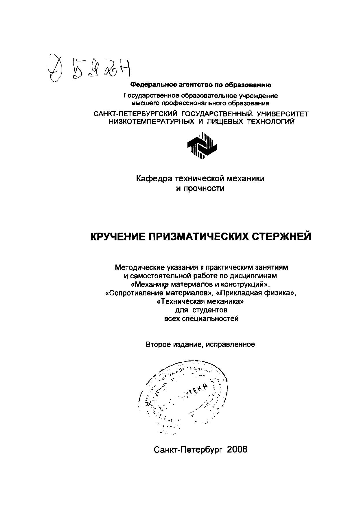 Кручение призматических стержней: Метод, указания к практическим занятиям и самостоятельной работе по дисциплинам «Механика материалов и конструкций», «Сопротивление материалов», «Прикладная физика», «Техническая механика» для студентов всех специальносте