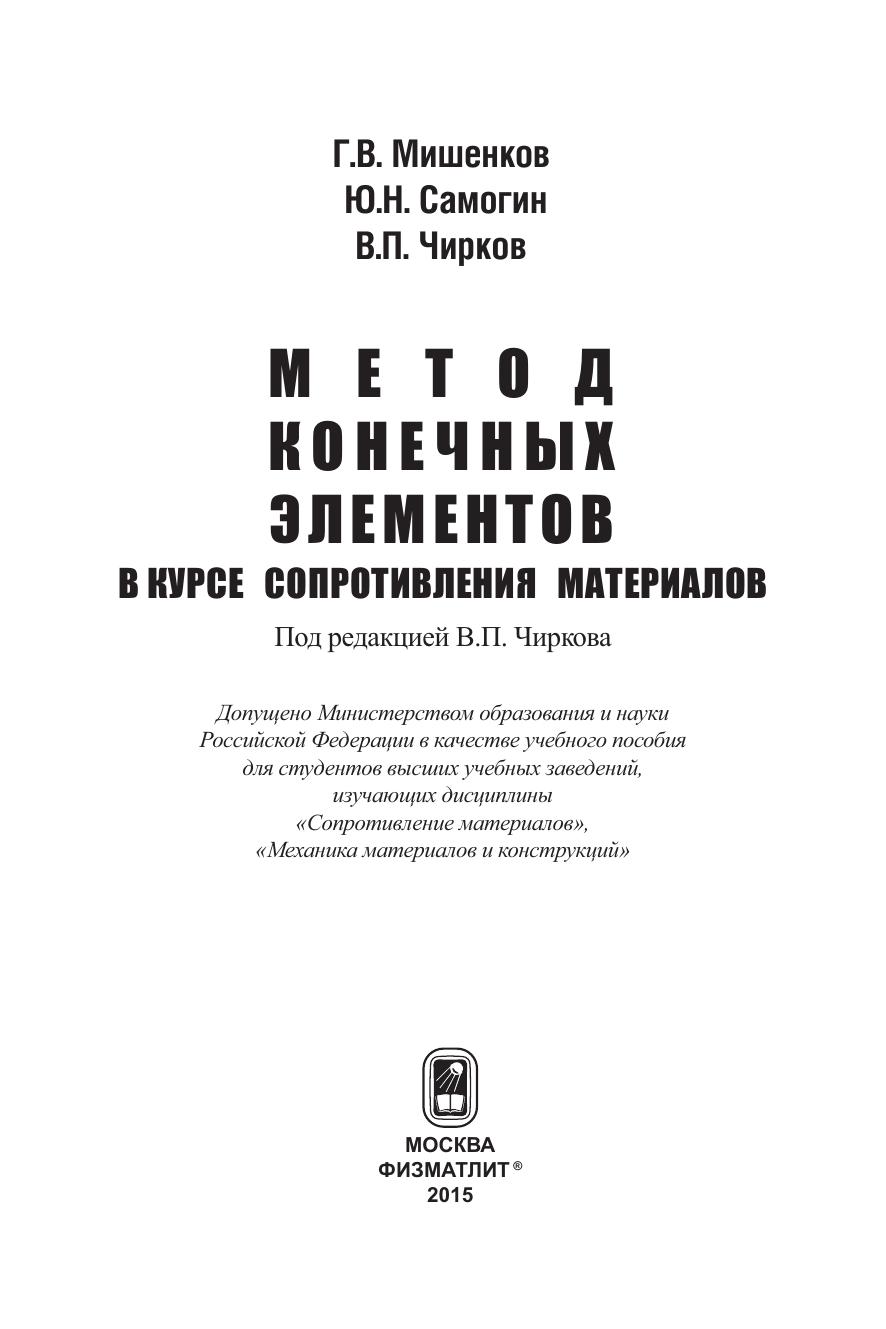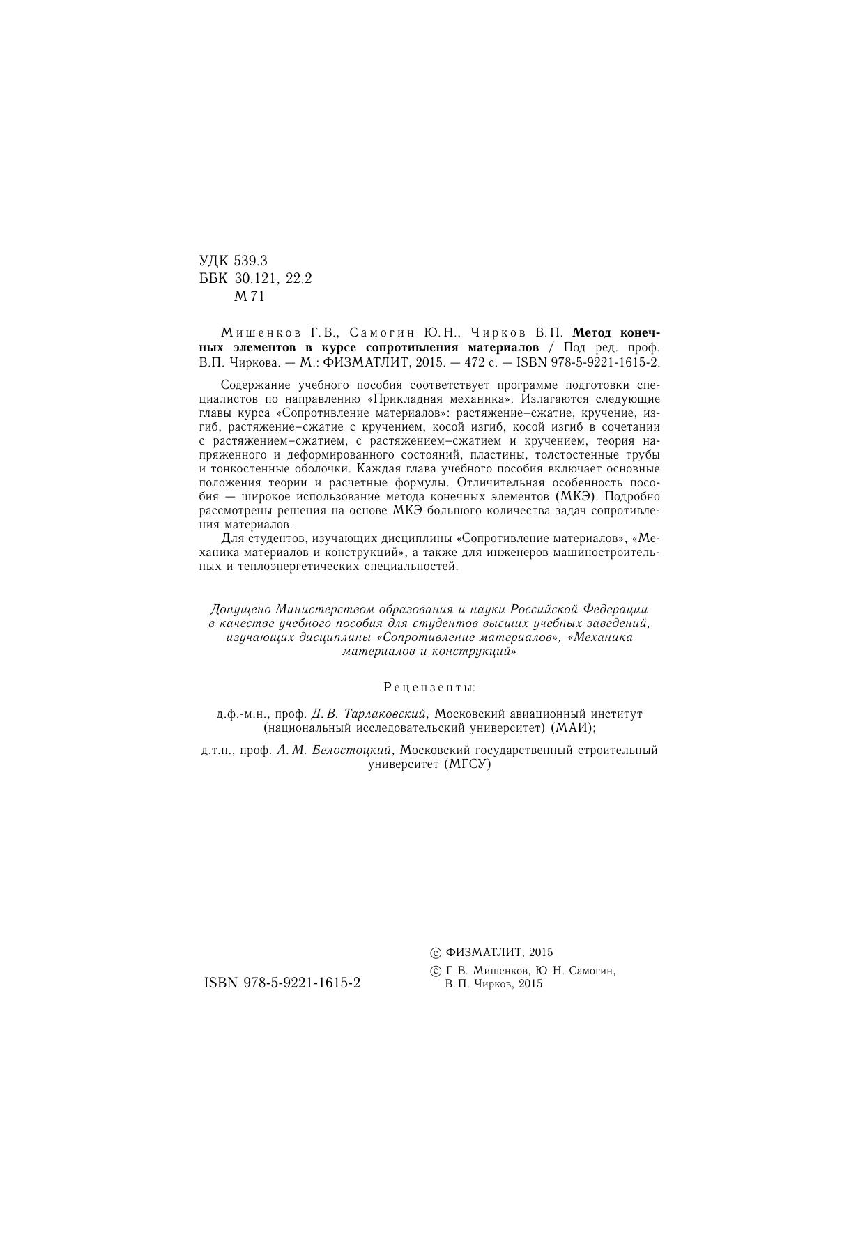 Гриф: Допущено Министерством образования и науки Российской Федерации в качестве учебного пособия для студентов высших учебных заведений, изучающих дисциплины «Сопротивление материалов», «Механика материалов и конструкций»