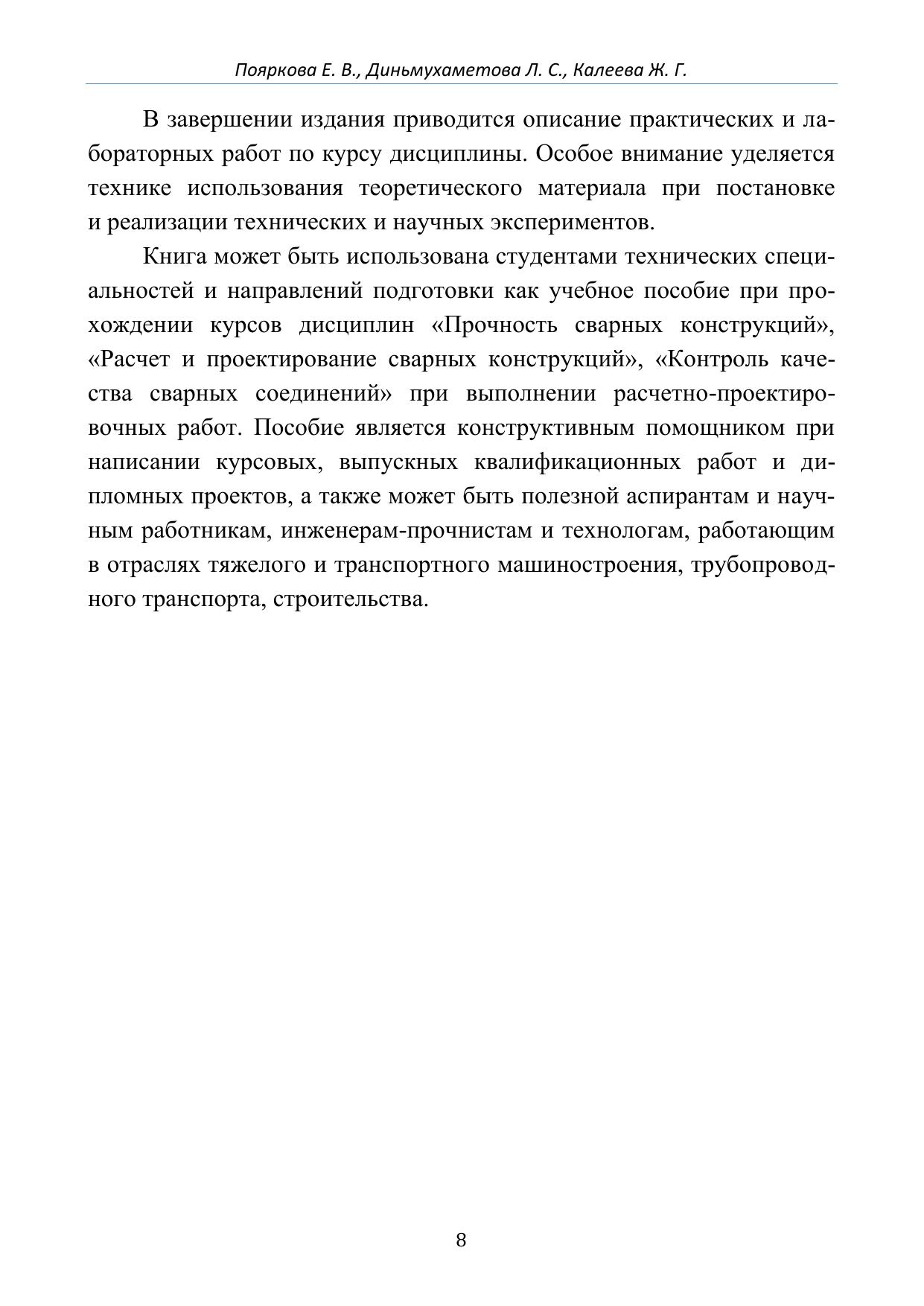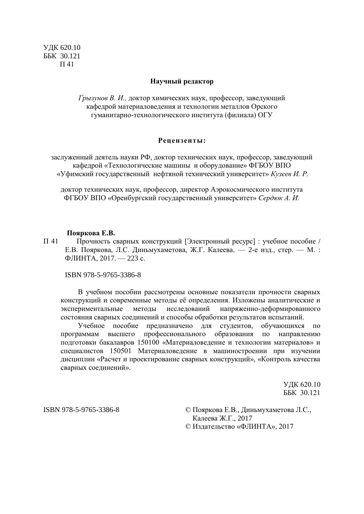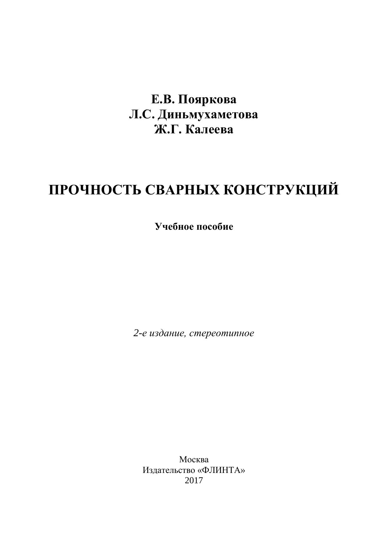 В учебном пособии рассмотрены основные показатели прочности сварных конструкций и современные методы её определения. Изложены аналитические и экспериментальные методы исследований напряженно-деформированного состояния сварных соединений и способы обработки результатов испытаний. Учебное пособие предназначено для студентов, обучающихся по программам высшего профессионального образования по направлению подготовки бакалавров 150100 «Материаловедение и технологии материалов» и специалистов 150501 Материаловедение в машиностроении при изучении дисциплин «Расчет и проектирование сварных конструкций», «Контроль качества сварных соединений».