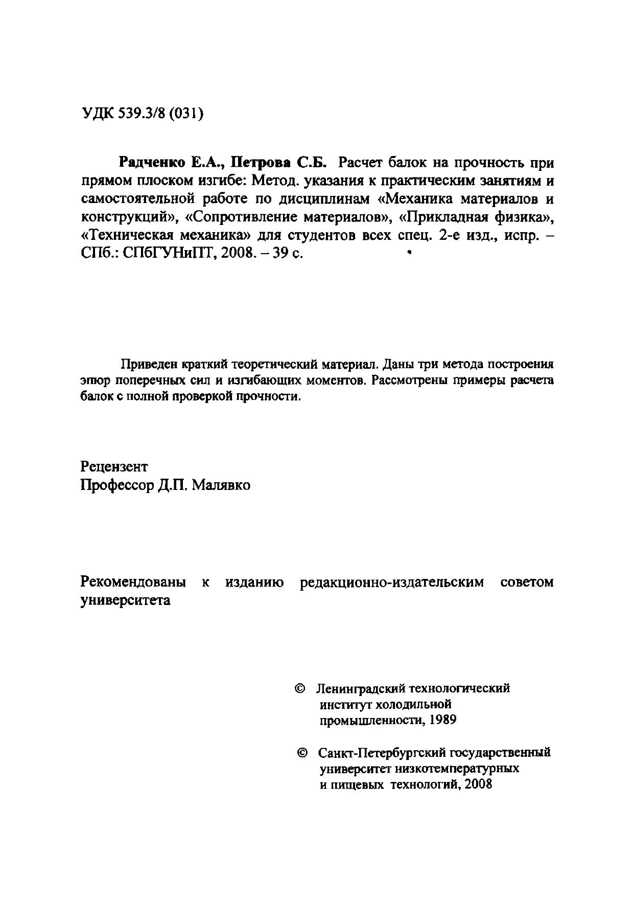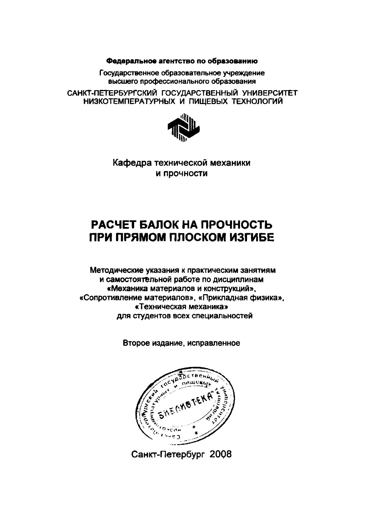 Расчет балок на прочность при прямом плоском изгибе: Метод, указания к практическим занятиям и самостоятельной работе