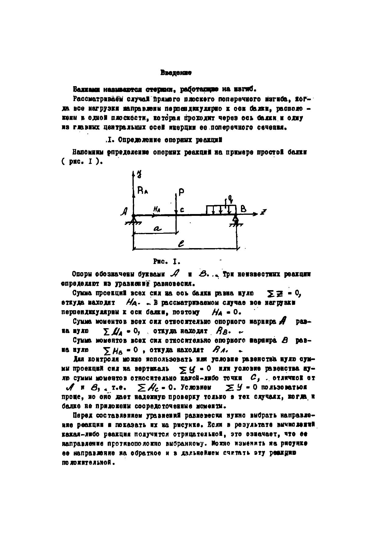 Приведен краткий теоретический материал. Даны три метода построения эпюр поперечных сил и изгибающих моментов. Рассмотрены примеры расчета балок с полной проверкой прочности.