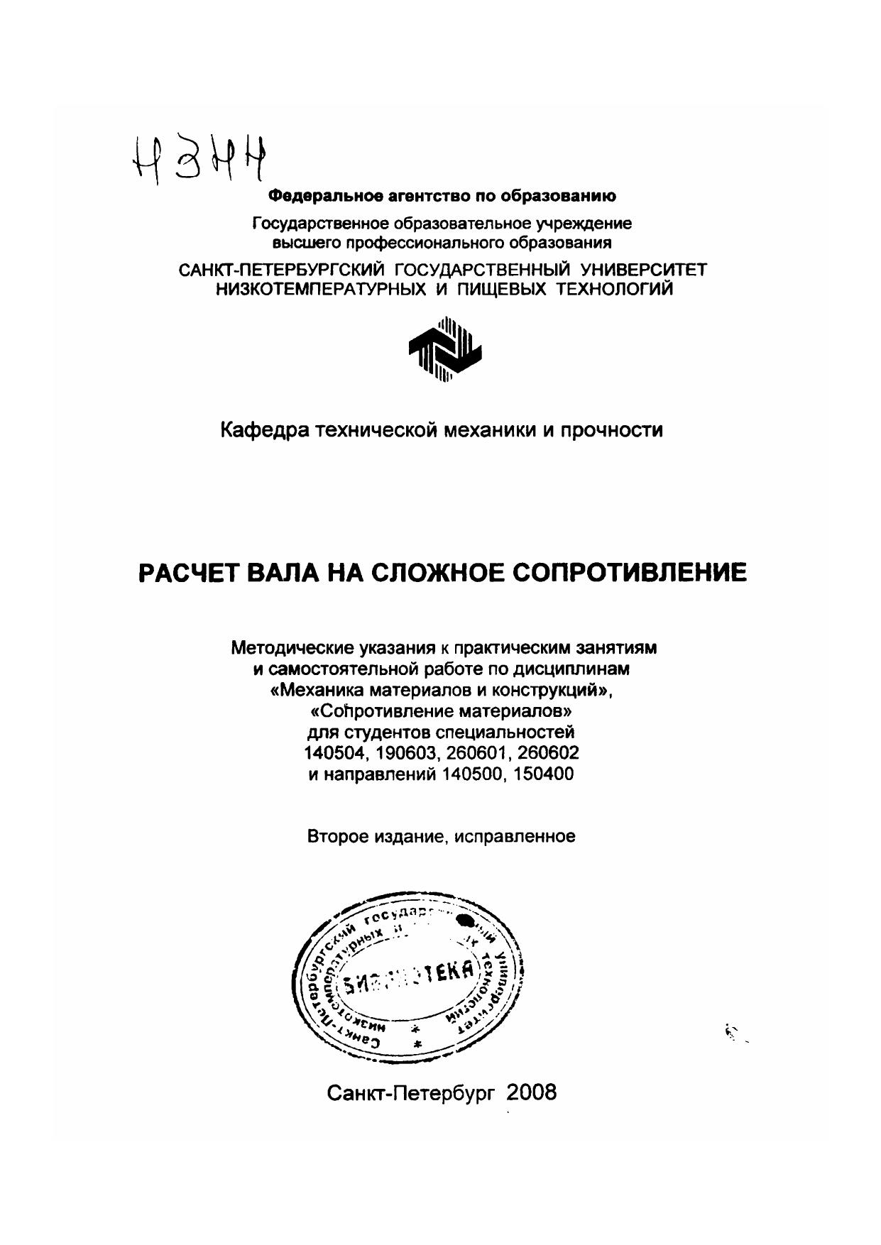 Расчет вала на сложное сопротивление: Метод, указания к практическим занятиям и самостоятельной работе
