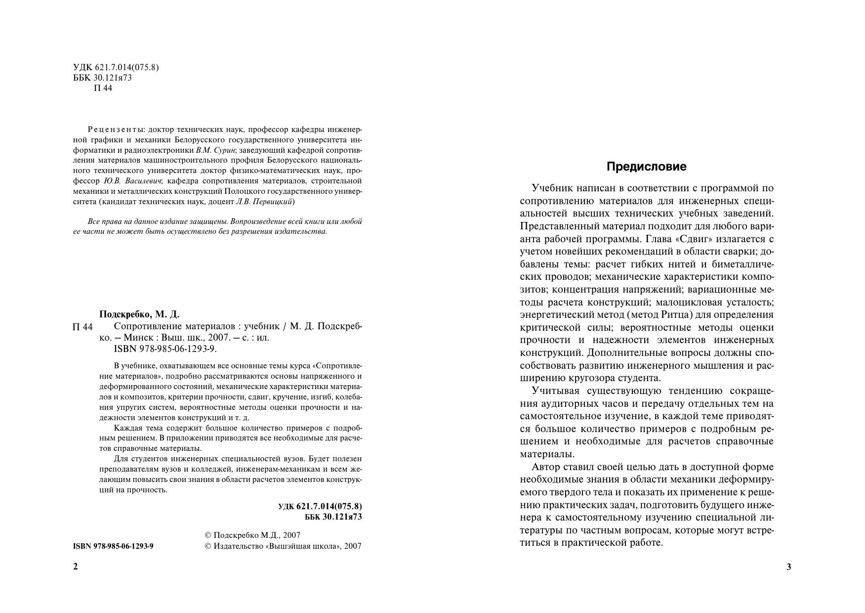 Подробно рассматриваются основы напряженного и деформированного состояний, механические характеристики материалов и композитов, критерии прочности, сдвиг, кручение, изгиб, колебания упругих систем, вероятностные методы оценки прочности и надежности элементов конструкций и т.д. Каждая тема содержит большое количество примеров с подробным решением. В приложении приводятся все необходимые для расчетов справочные материалы. Для студентов инженерных специальностей вузов. Будет полезен преподавателям вузов и колледжей, инженерам-механикам.