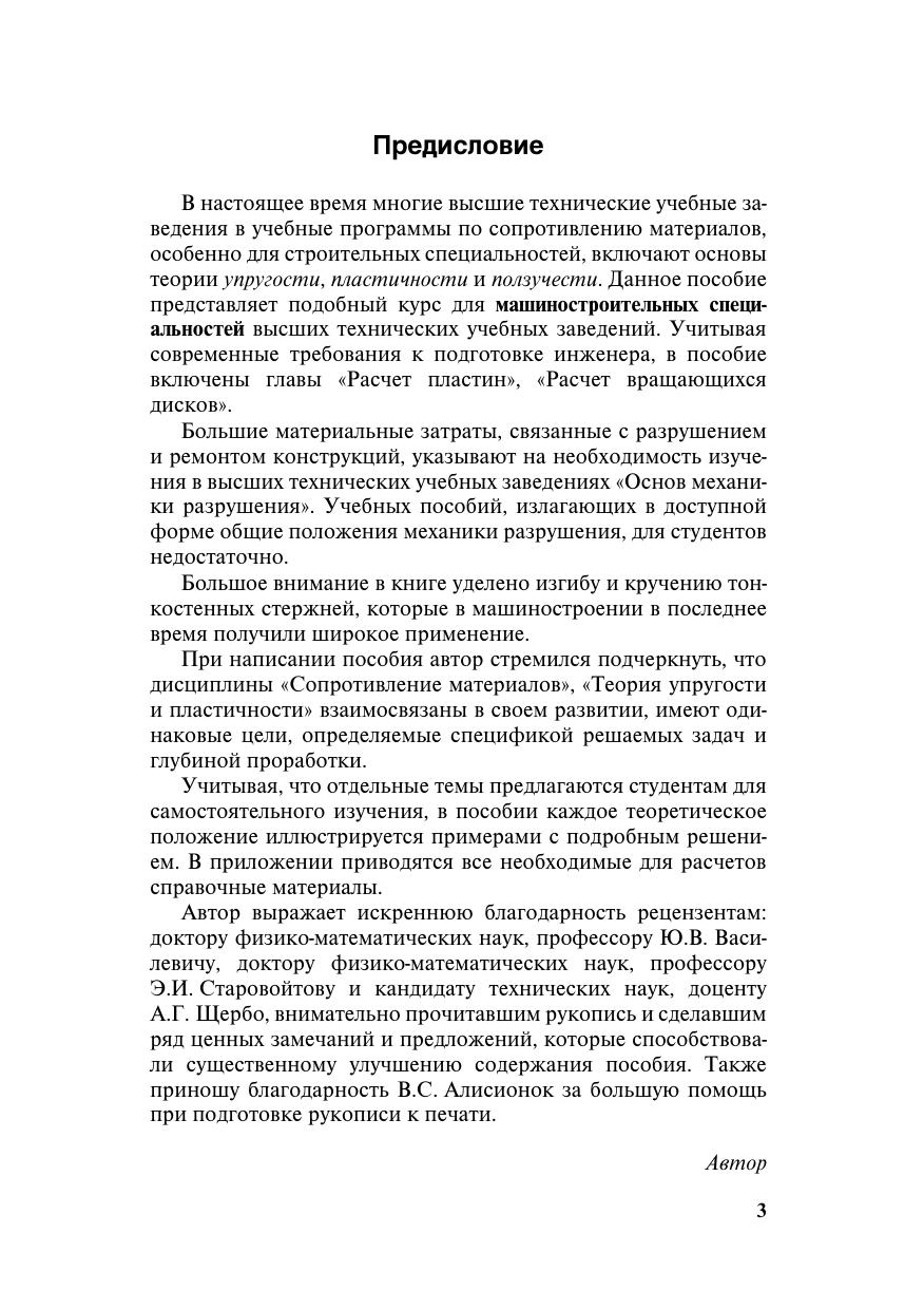 Изложены вопросы линейной теории упругости пространственная и плоская задачи теории упругости изгиб, кручение тонкостенных стержней расчет пластин, вращающихся дисков основные положения общей теории пластичности и ползучести материалов основы механики разрушения основные принципы повышения живучести конструкций. Содержит примеры с подробным решением. В приложении приводятся необходимые для расчетов справочные материалы. Для студентов инженерных специальностей вузов. Может быть полезно инженерам-механикам и инженерам-конструкторам, преподавателям технических вузов и колледжей.