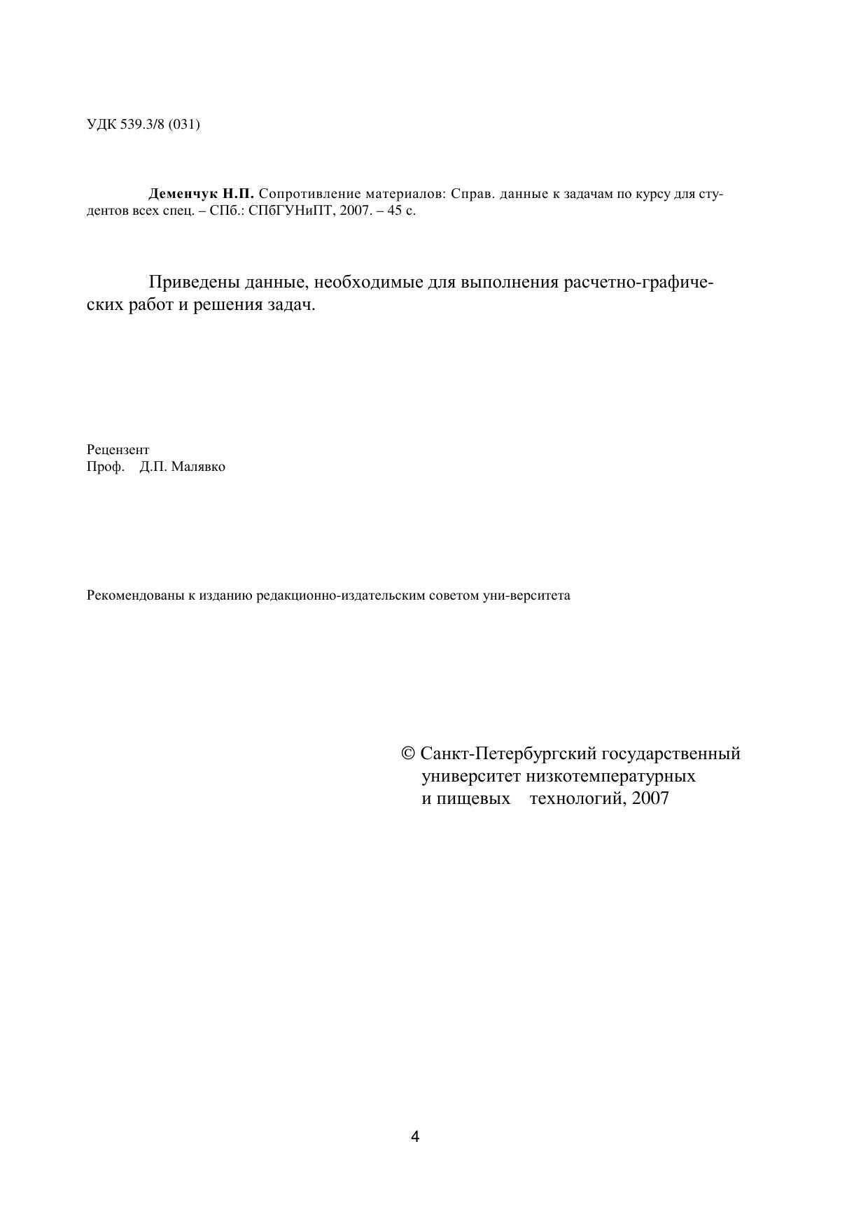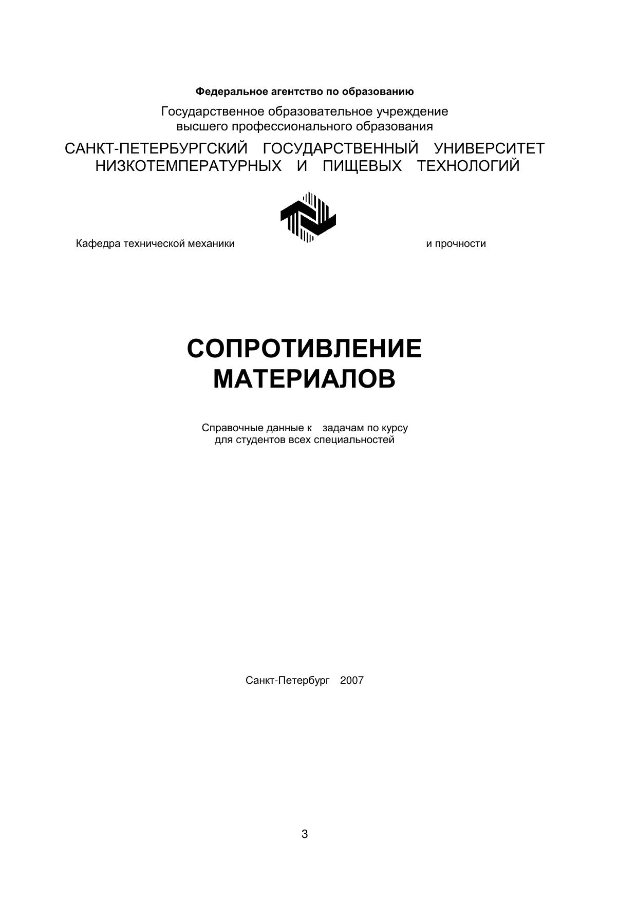 Сопротивление материалов: Справочные данные к задачам по курсу для студентов всех специальностей