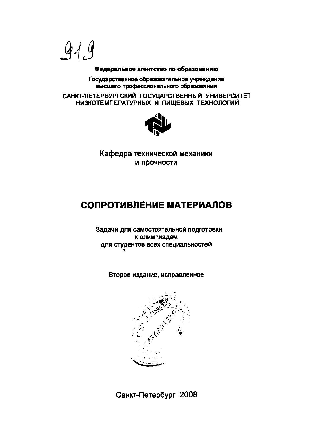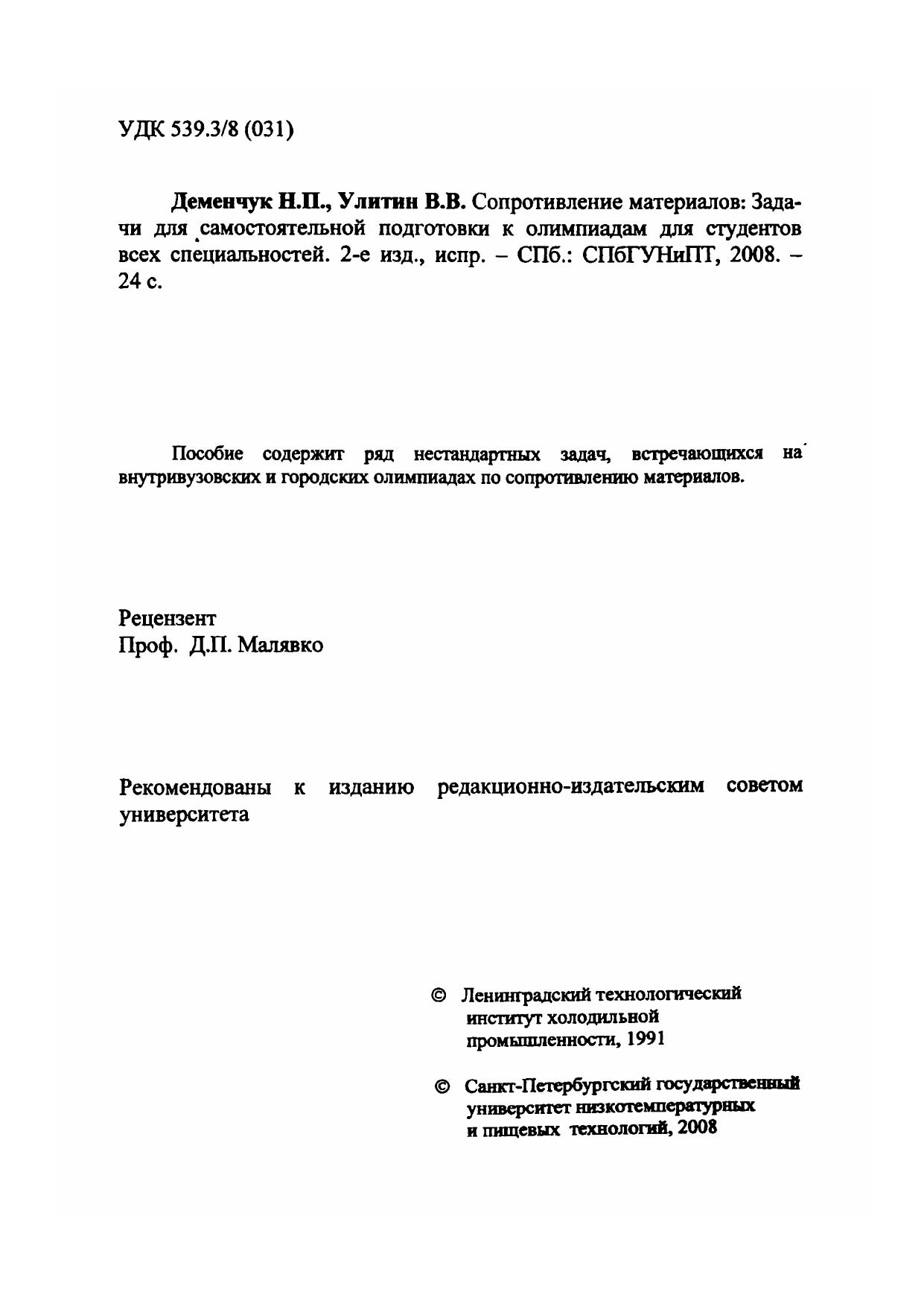 Пособие содержит ряд нестандартных задач, встречающихся на внутривузовских и городских олимпиадах по сопротивлению материалов.