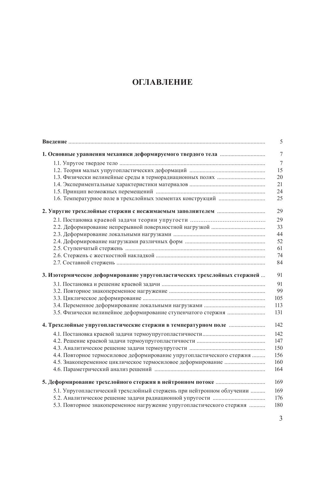 В монографии систематически изложены постановки и методы решения краевых задач по определению напряженно-деформированного состояния трехслойных стержневых элементов конструкций при однократных и квазистатических переменных нагрузках в терморадиационных полях. Учтены физически нелинейные свойства материалов слоев при комплексных силовых, тепловых и радиационных воздействиях. Приведен ряд аналитических решений и численный параметрический анализ напряженно-деформированного состояния трехслойных стержней. Адресуется научным сотрудникам, инженерам, аспирантам, магистрантам и студентам высших учебных заведений, которые занимаются исследованиями в области механики тонкостенных элементов конструкций.